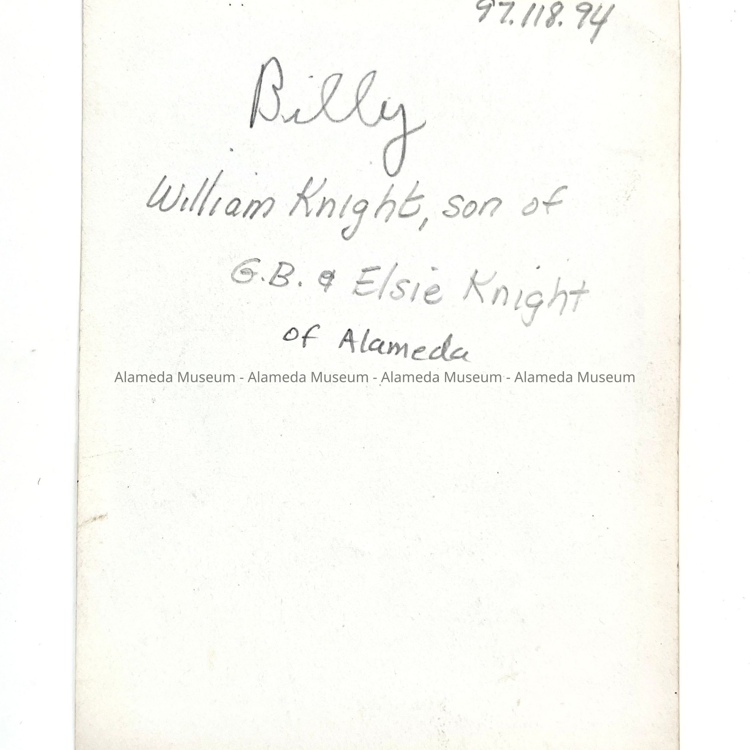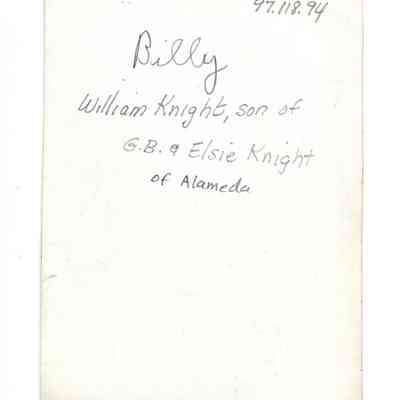 PHOTOGRAPH OF WILLIAM, SON OF CAPT G B AND ELSIE KNIGHT OF ALAMEDA, CALIFORNIA.
