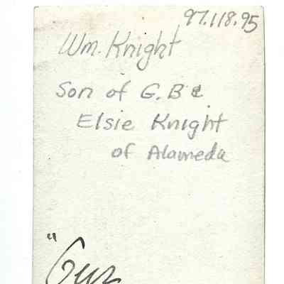 PHOTOGRAPH OF WILLIAM, SON OF CAPT G B AND ELSIE KNIGHT OF ALAMEDA.