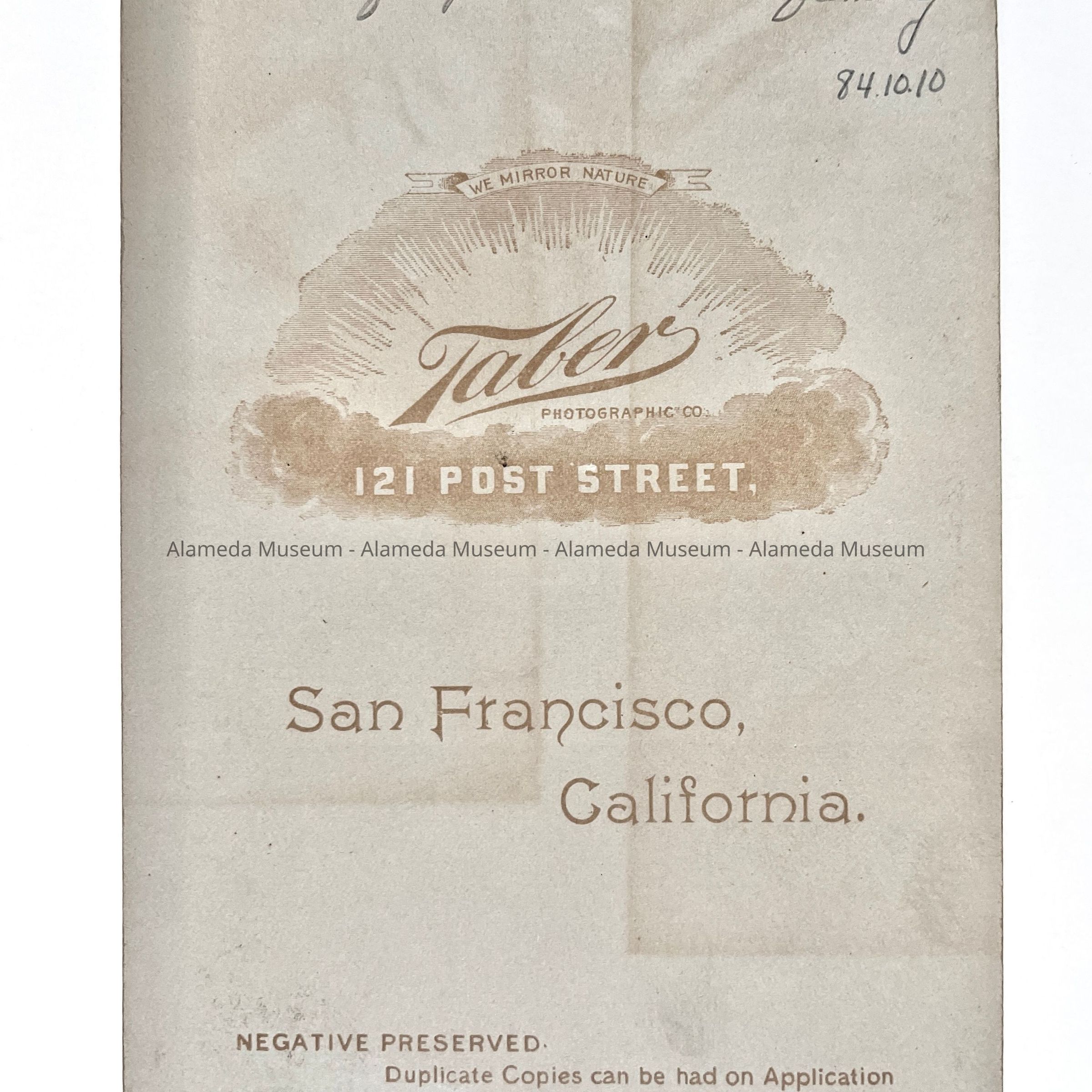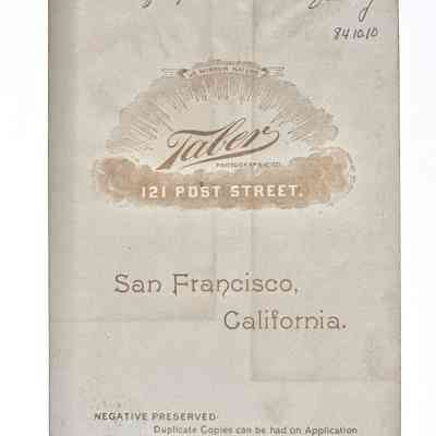 DESCRIPTION: Black and white photograph, cabinet size, signed "Taber Studios, San Francisco".