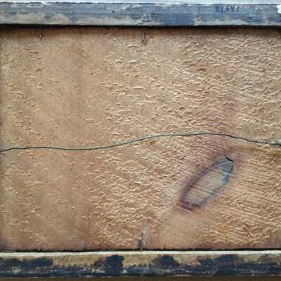 Description: Shaded wood frame enclosing sepia tinted photograph.