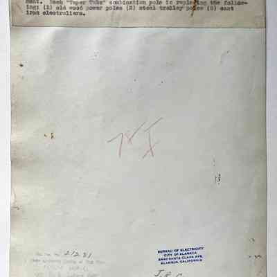 Description: Glossy black/white photo, unmounted. Photographer: Ford E. Samuel, Oakland. The image has a band of glue staining penetrating the emulsion from the verso, along its top margin.