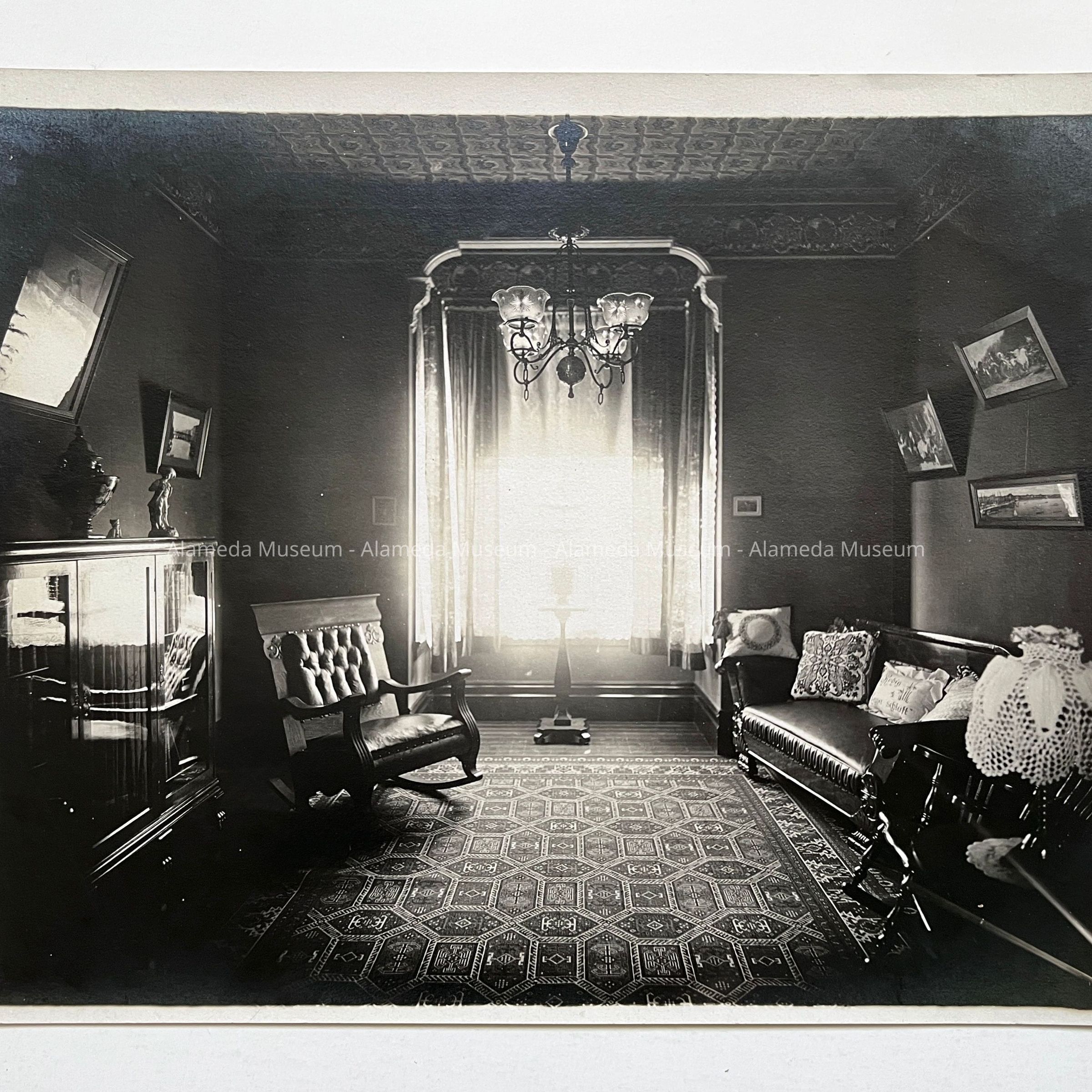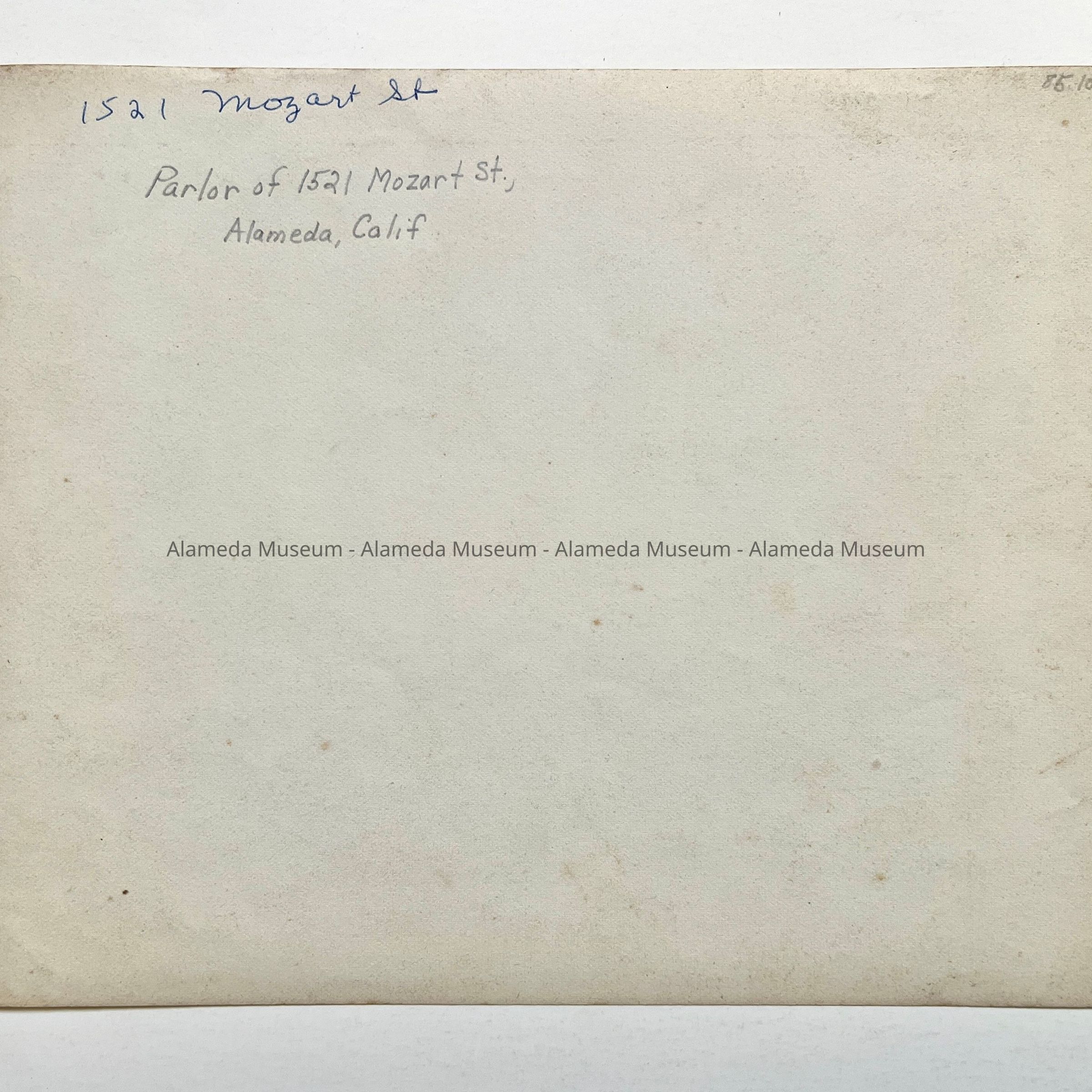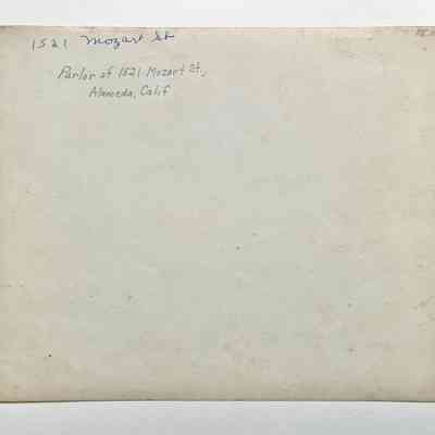 History of Object: Interior photo depicting the parlor of 1519 Mozart Street, Alameda.