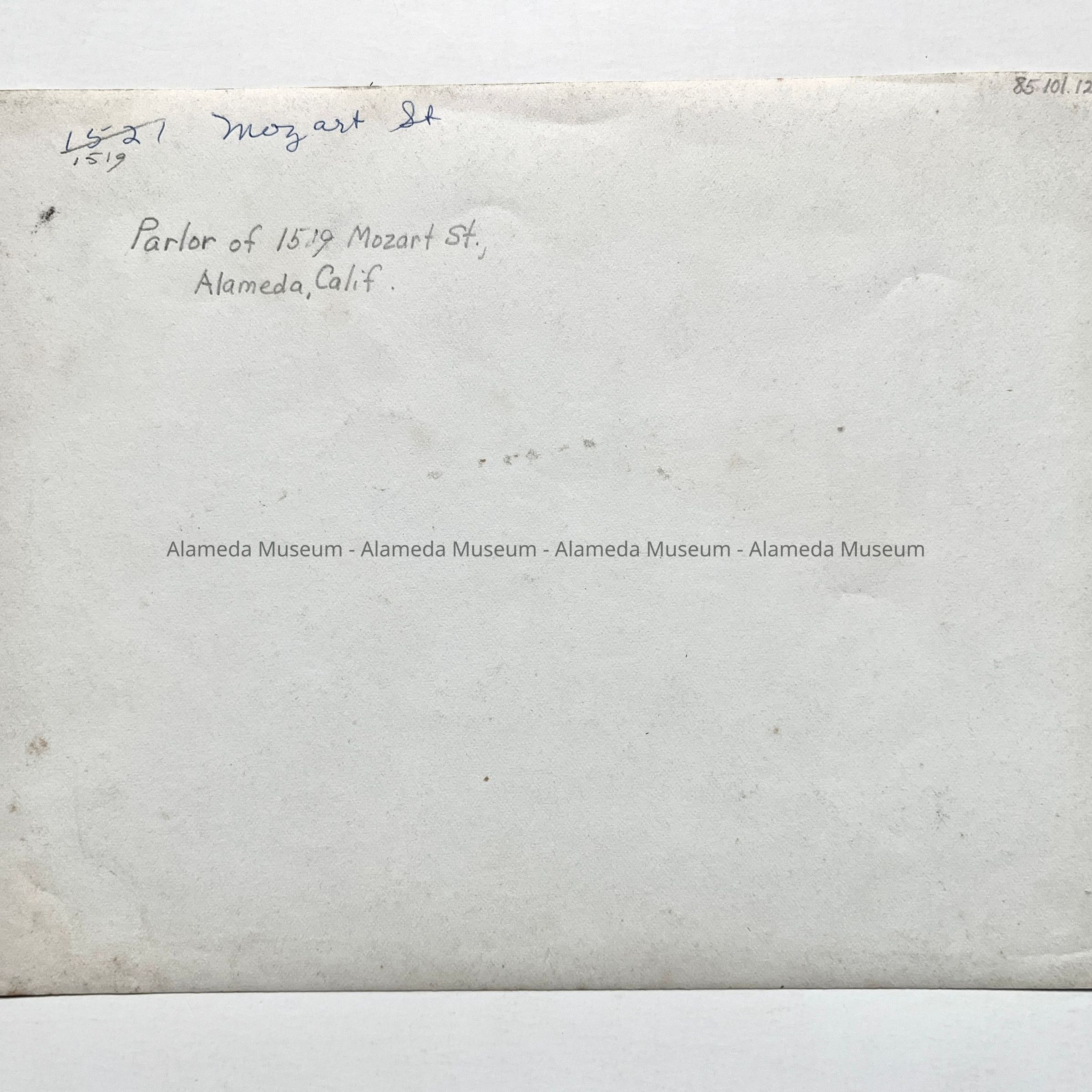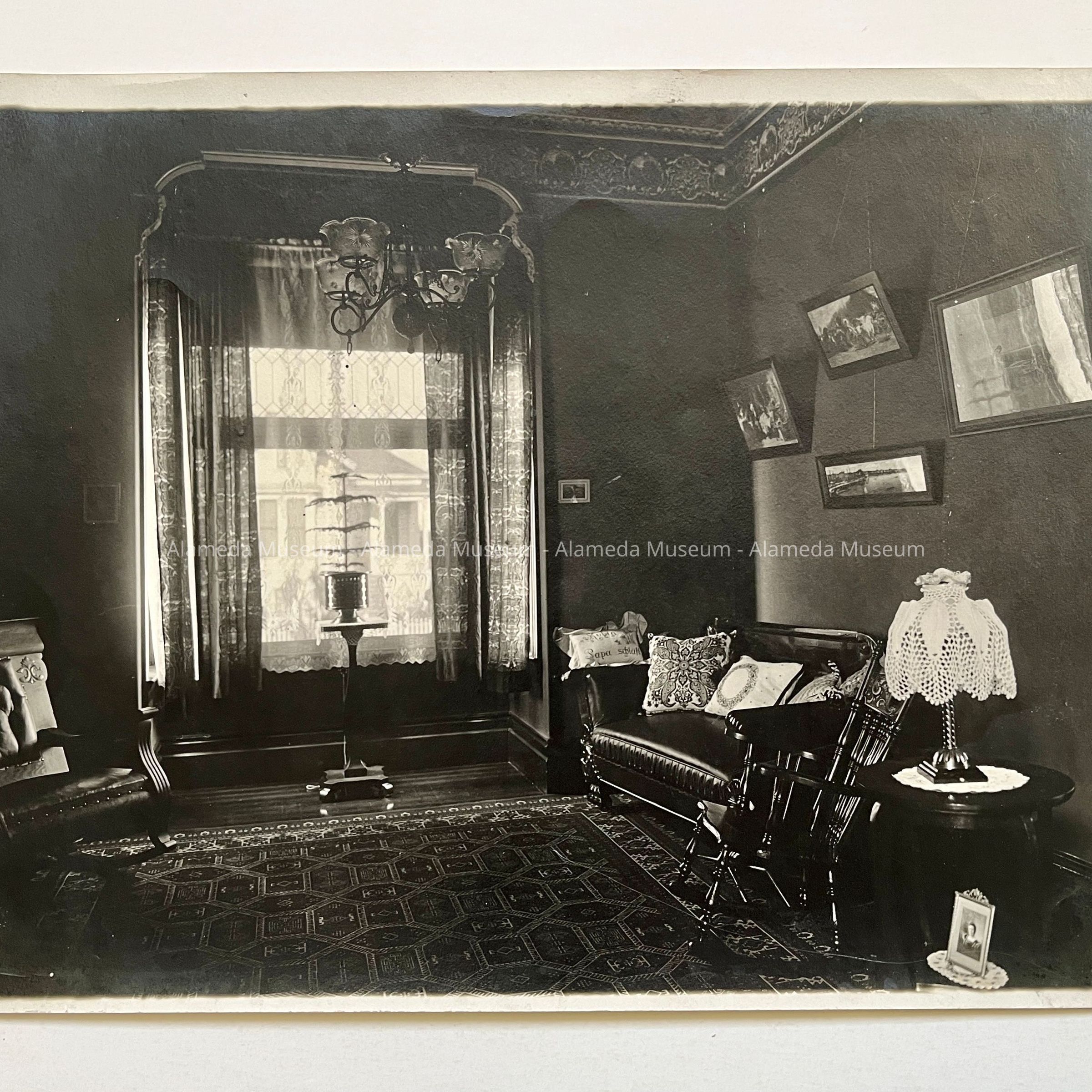 History of Object: Interior photo depicting the parlor of 1519 Mozart Street, Alameda.