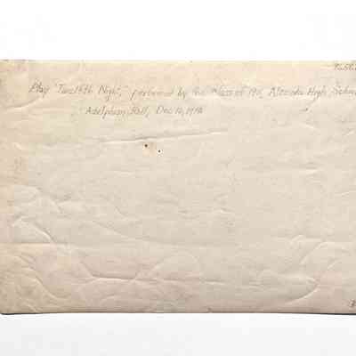 History of Object: Photo of the play "Twelfth Night," performed by the class of 1911, Alameda High School, Adelphian Hall, Dec 10, 1910.