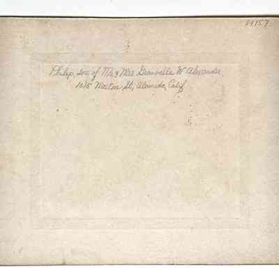 History of Object: Photo of Philip, son of Mr. & Mrs. Granville W. Alexander, residents of 1015 Morton Street, Alameda, from approximately 1894 to 1906.