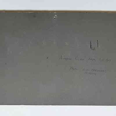 Description: Sepia-toned black/white photo mounted on charcoal paperboard. Photographer: C.F. Magnanos, Alameda. Mounting has an old green cataloging label glued to the upper left corner and a nail hole in its upper mid section.