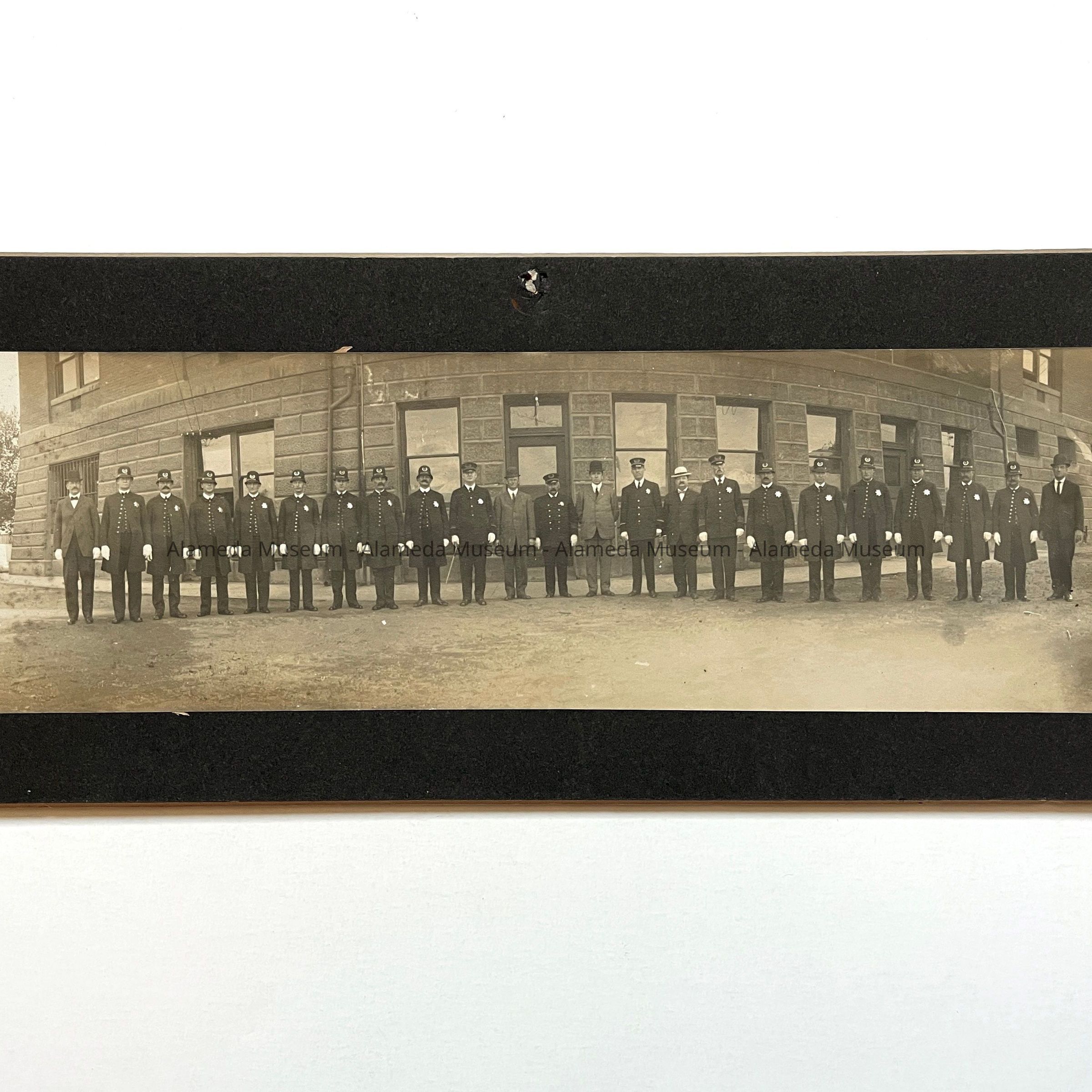History of Object: The Alameda Police Department members posed in front of the station located in the basement of the City Hall.