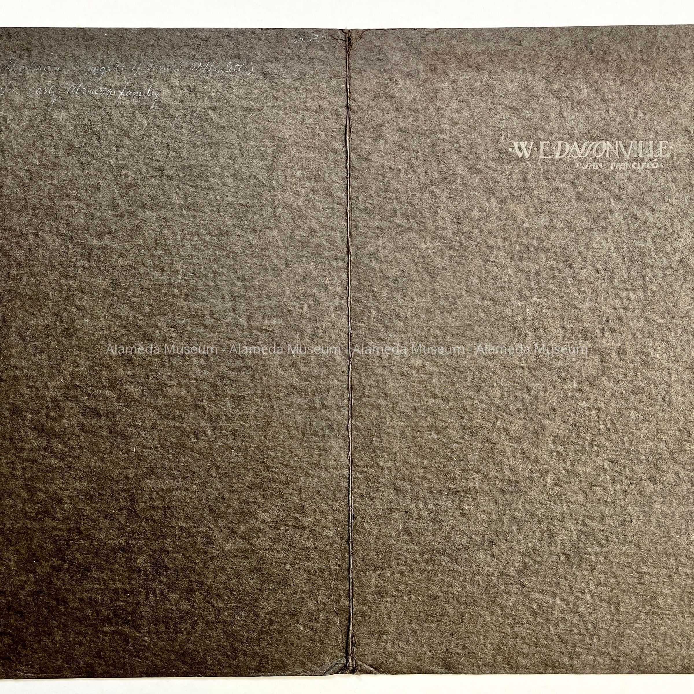 Description: Sepia tinted photo in original jacket with printed caption "W. E. Dassonville, San Francisco". Photo signed in ink "W. E. Dassonville", lower right corner.