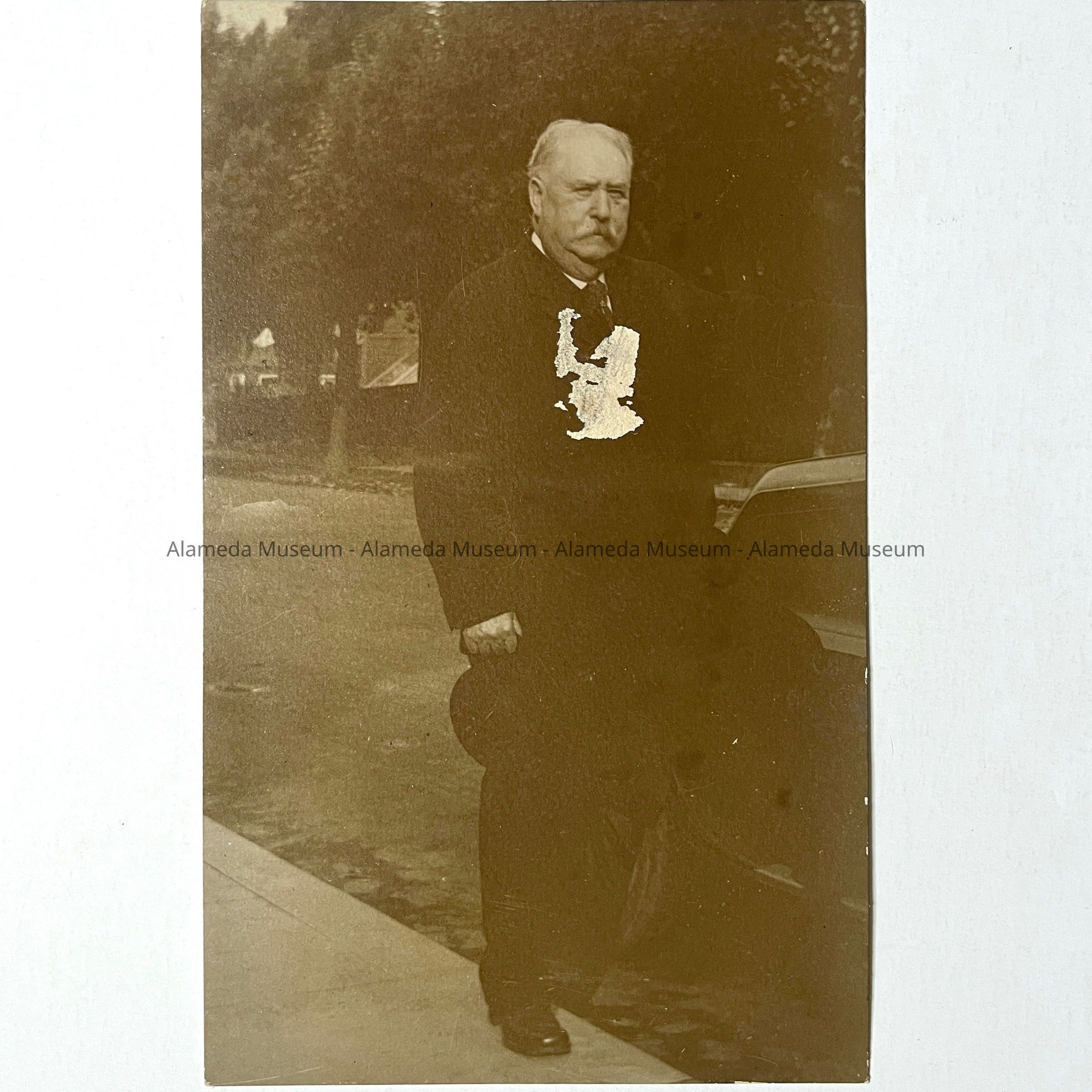 Description: Sepia-toned contact print, unmounted. Photographer unknown. About an inch square segment of the emulsion has been peeled off the image due to contact with an adhesive tape. Size: L-7 x W-4 1/4 in.