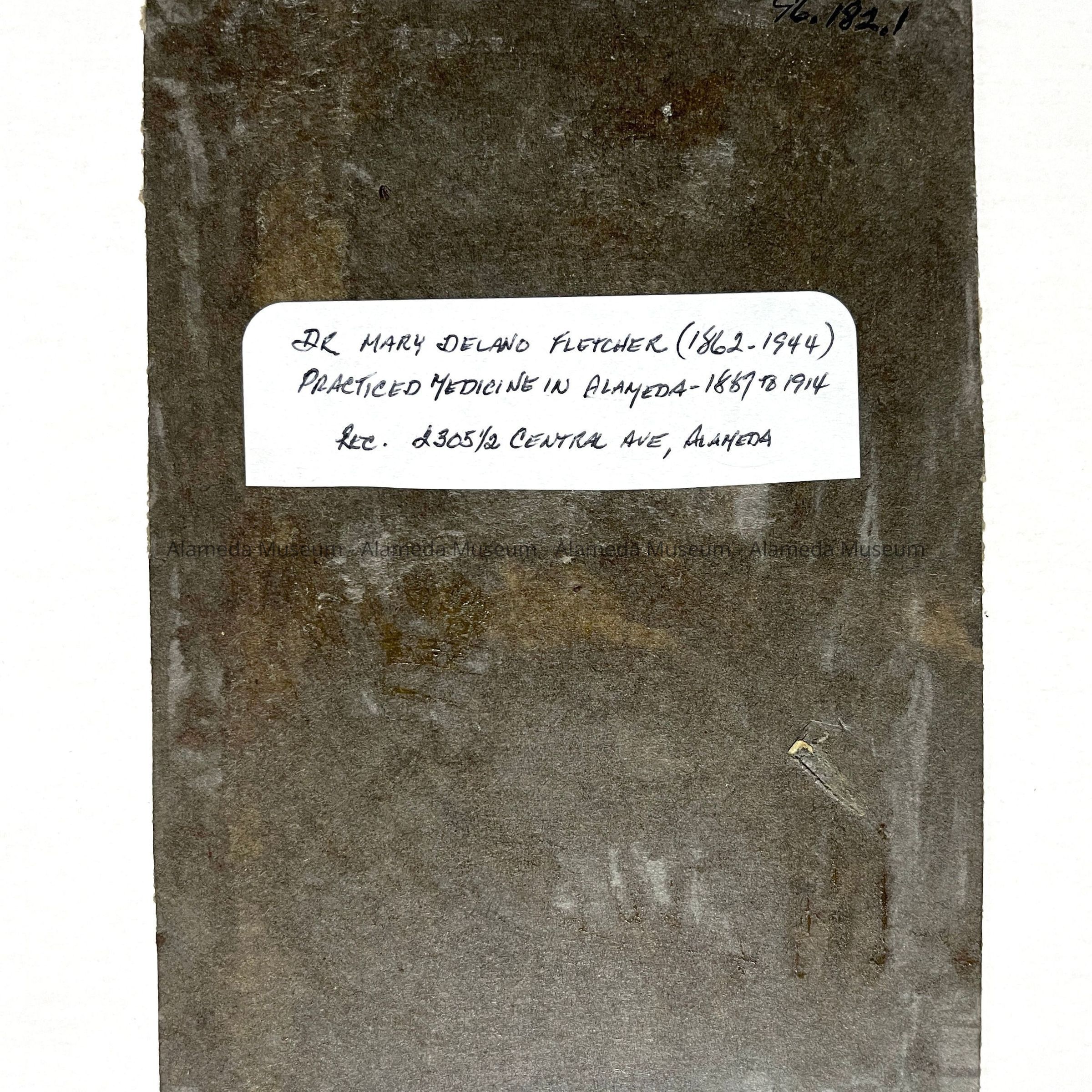 History of Object: Portrait of Dr. Mary Delano Fletcher, physician (1862–1944), who practiced medicine in Alameda from 1887 to 1914. She resided at 230572 Central Avenue, at the time of the 1912 Alameda City Directory.