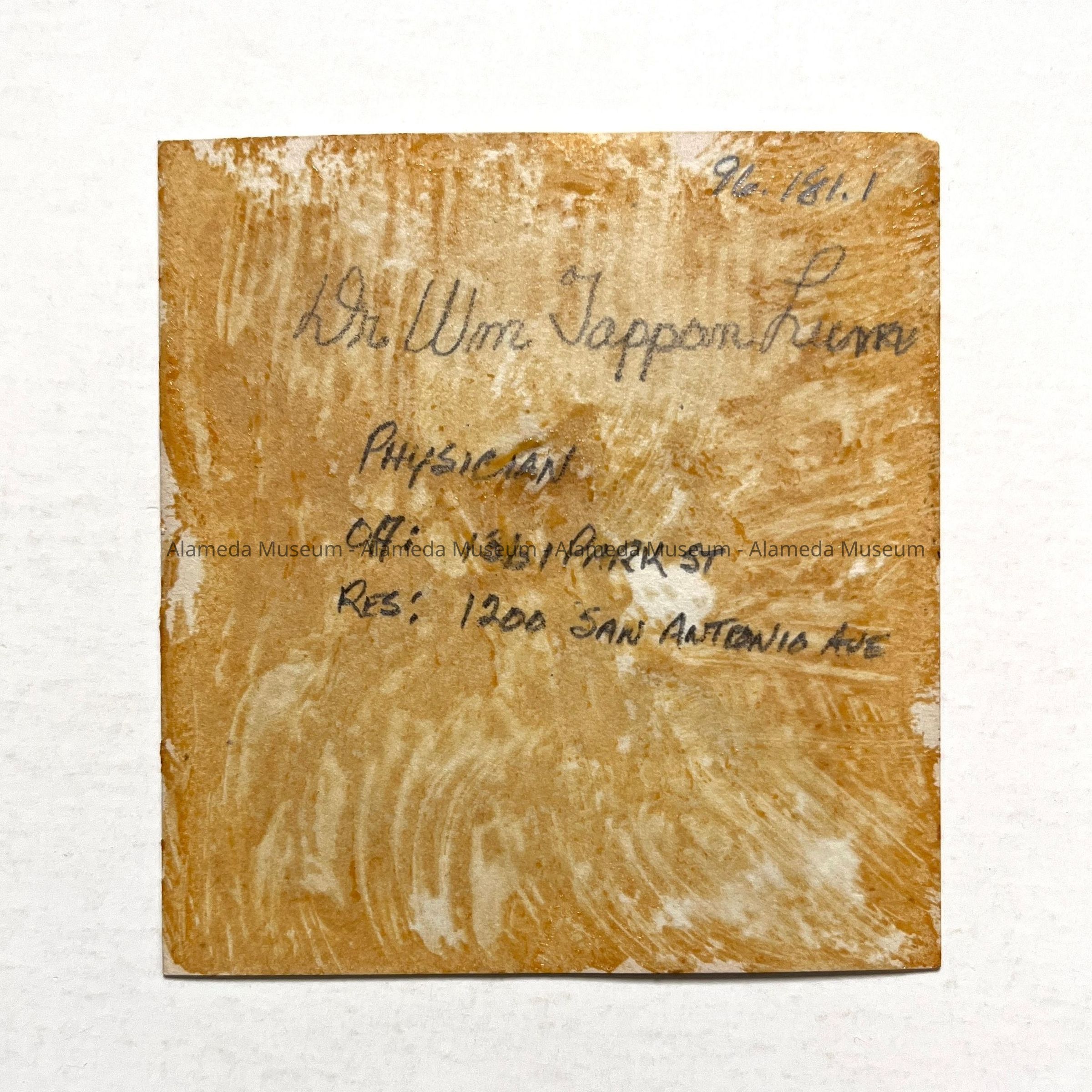 History of Object: Portrait of Dr. William Tappan Lum, a physician whose office was at 1361 Park St., and his residence at 1200 San Antonio Avenue.