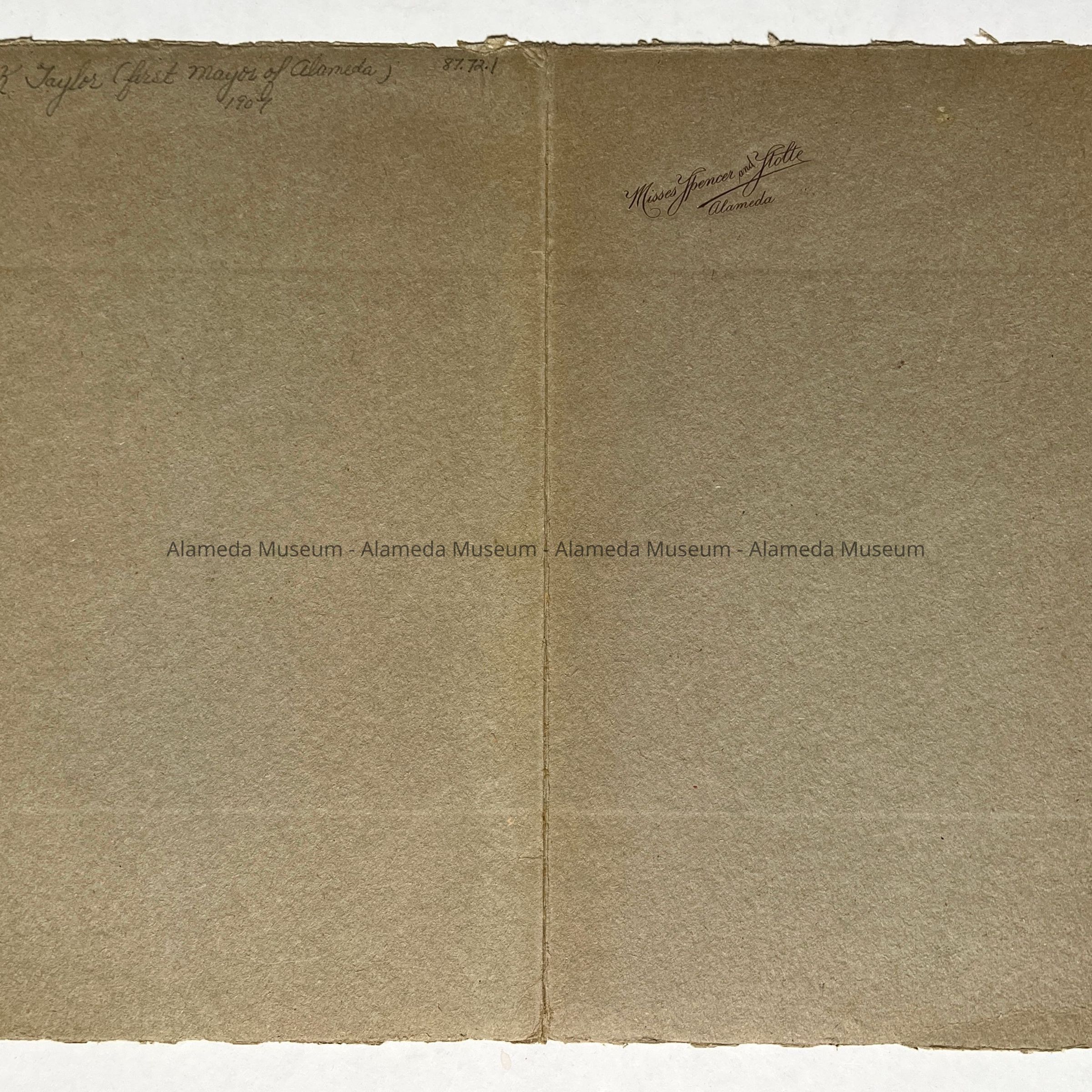 Description: Black & white photo in original jacket (grey color) signed on the exterior (in ornate type) "Misses Spencer and Stolte, Alameda." Signature repeated in script at the lower right corner of photo.