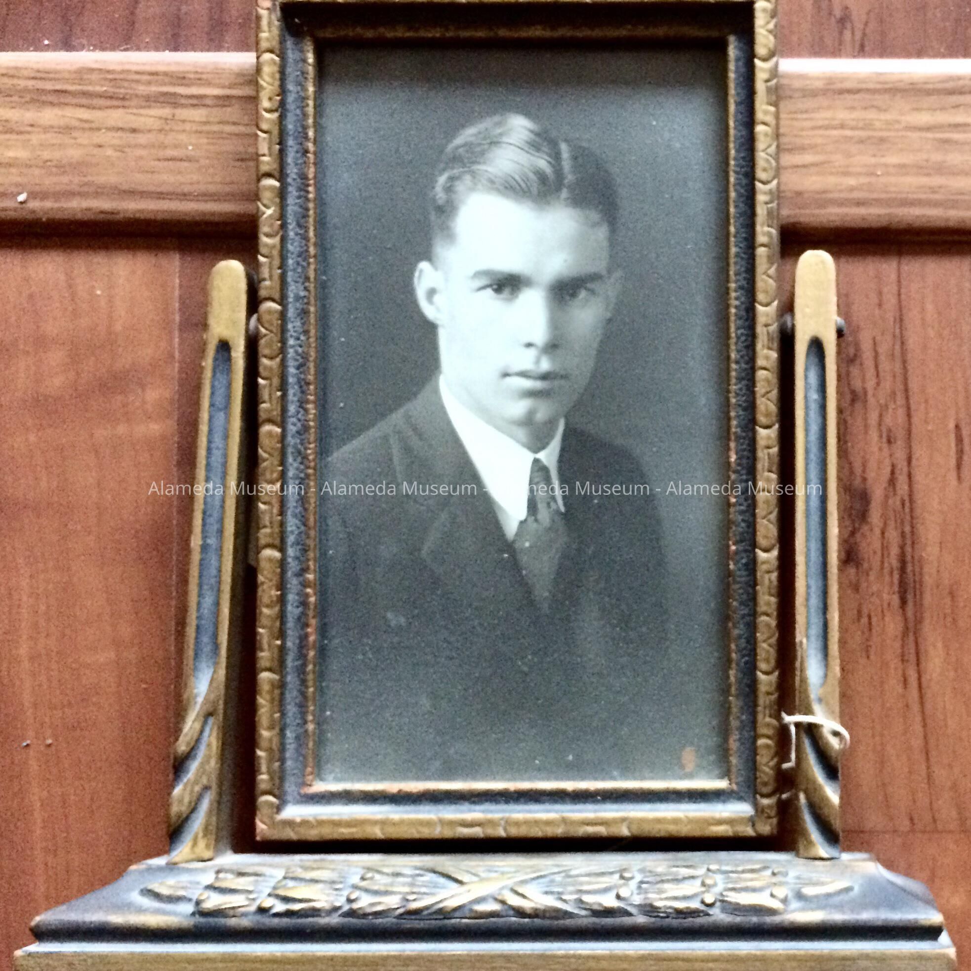 HISTORY OF OBJECT: PORTRAIT PHOTO OF THE LATE EDWARD KOLLMYER, HUSBAND OF MABEL. THEY WERE MARRIED ONLY A FEW YEARS PRIOR TO EDWARD'S DEATH OF TUBERCULOSIS; THEY MARRIED ON JULY 11, 1928. HE WAS RAISED AT 1310 SHERMAN STREET, WHICH THE FAMILY PURCHASED IN 1902.