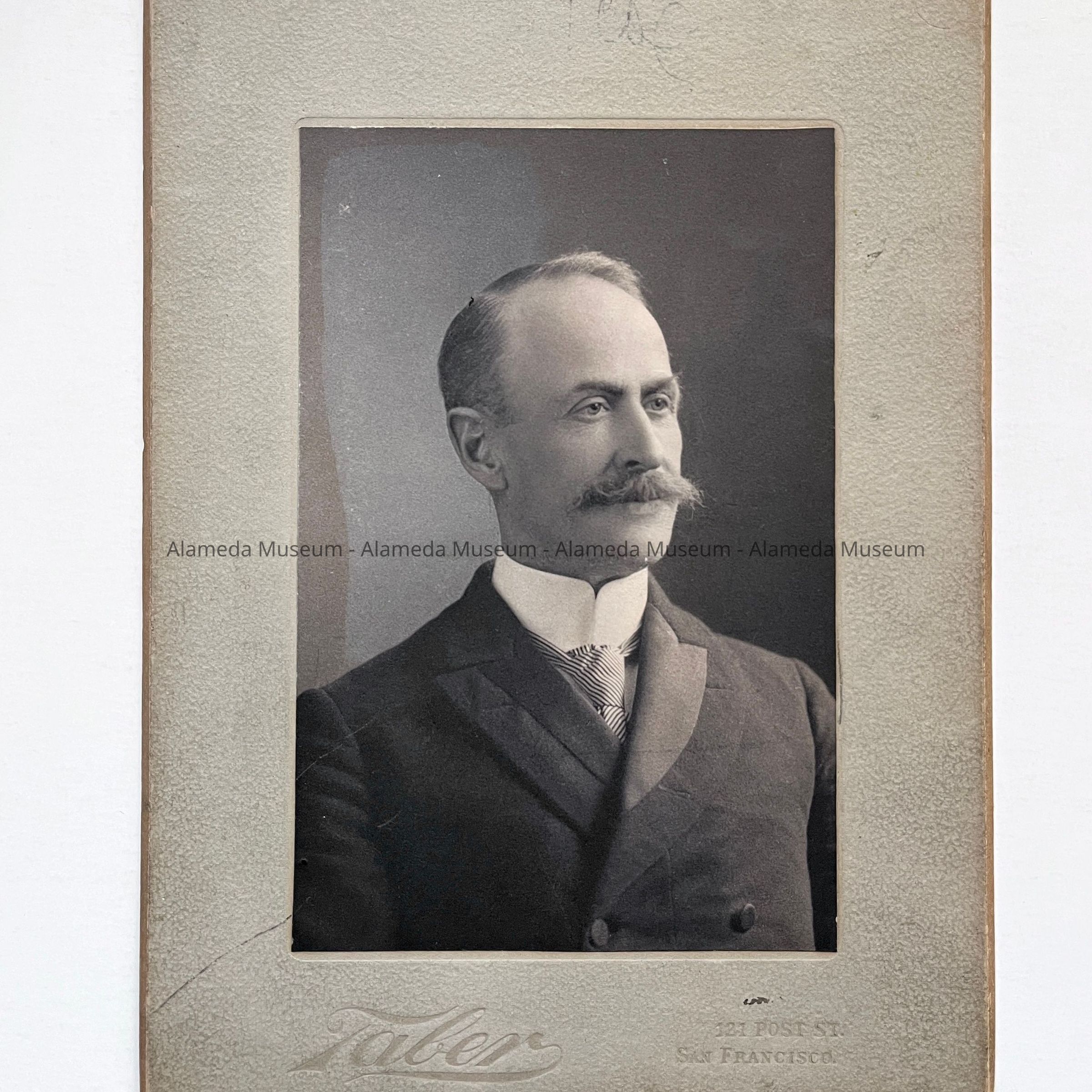Description: Black/white photo mounted on ilt. grey paperboard. Photographer: Taber, 121 Post St., San Francisco. Minor staining along the image, probably from glue penetration. Old cataloging number is written in ink on the upper right margin of the mounting.