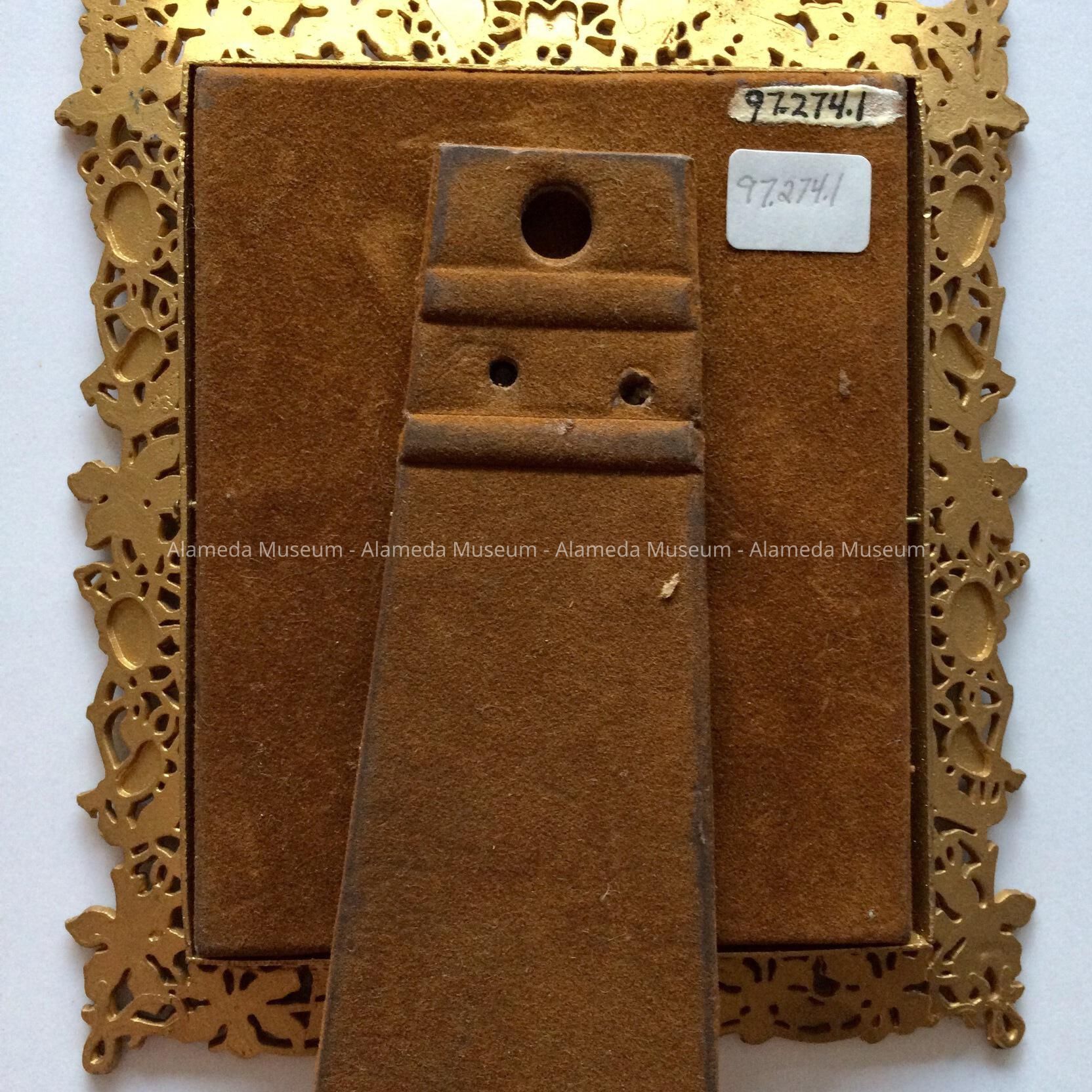 BLACK-AND-WHITE PHOTOGRAPH, UNDER GLASS, IN ORNATE GILDED POT-METAL FRAME.