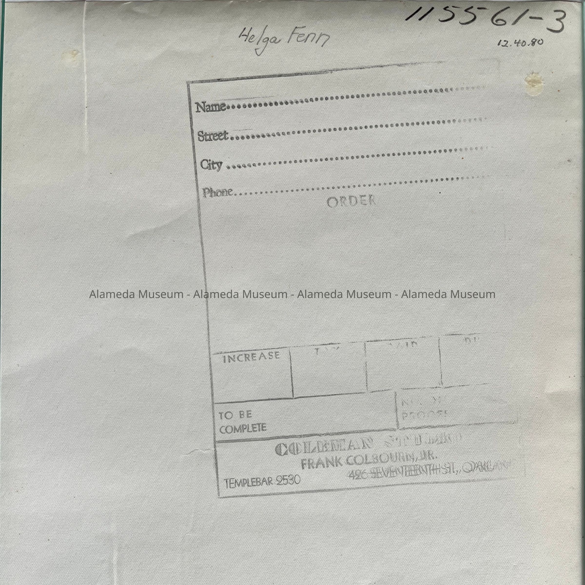 Description: Black and white matte finish photograph signed on the reverse by Coleman Studios of 7th Street, Oakland.
