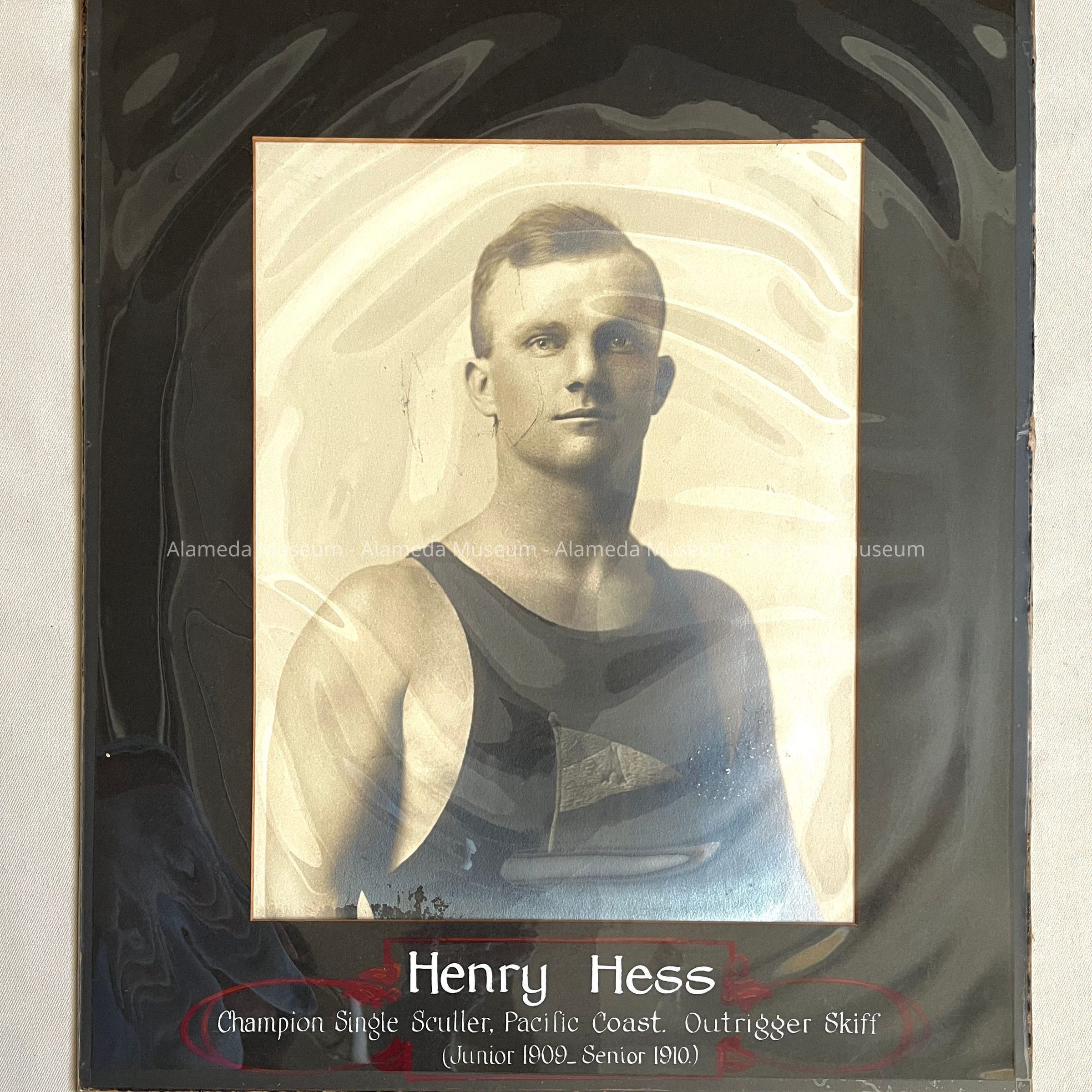 History of Object: Portrait of athlete Henry Hess, the "Champion Single Sculler, Pacific Coast Outrigger Skiff, 1909–1910".