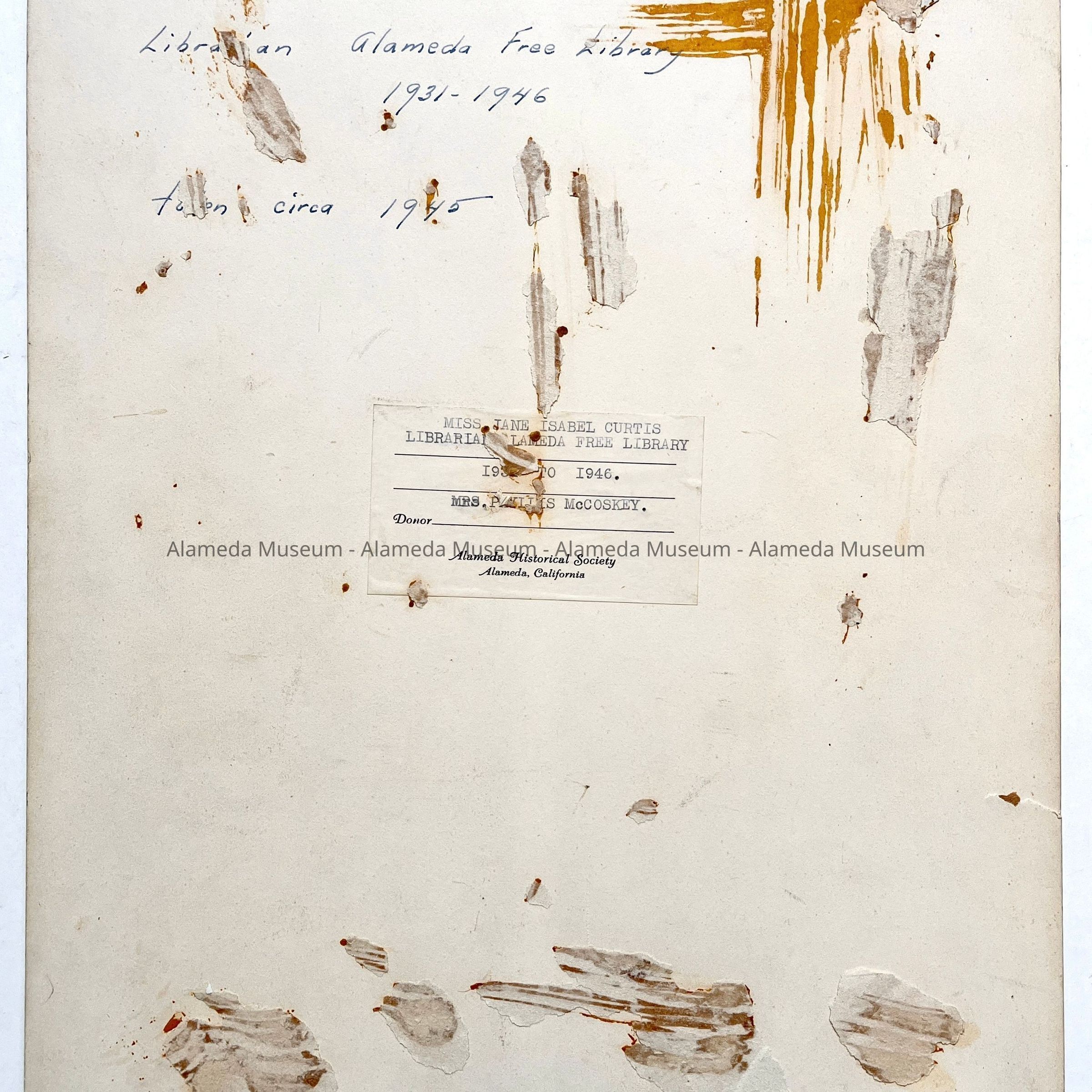 History of Object: Portrait of Jane Isabel Curtis, Librarian of the Alameda Free Library from 1931 to 1946.