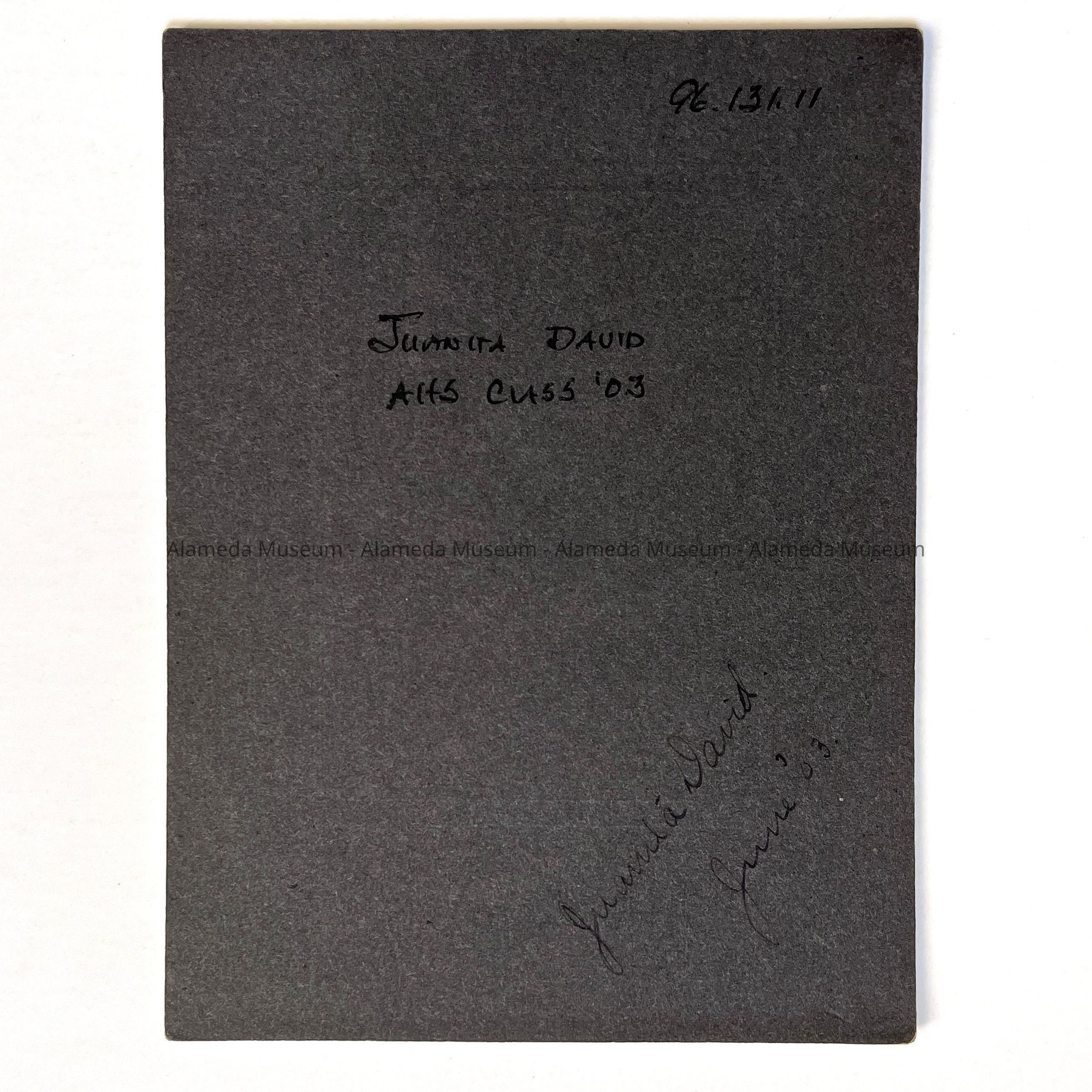 History of Object: Full-face portrait of Juanita David, an Alameda High School classmate of the future judge, Daniel Knox. Her family may have resided at 2269 Clinton Ave. (per the 1912 Alameda City Directory).