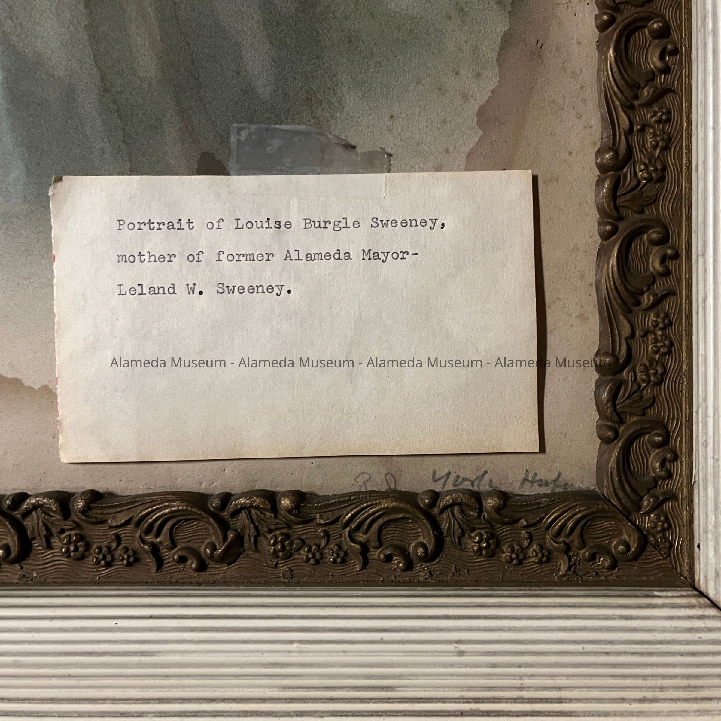 Portrait of Mrs. Michael Sweeney, mother of Leland Warren Sweeney, former Mayor of Alameda. Mrs. Sweeney was an early resident of the city.