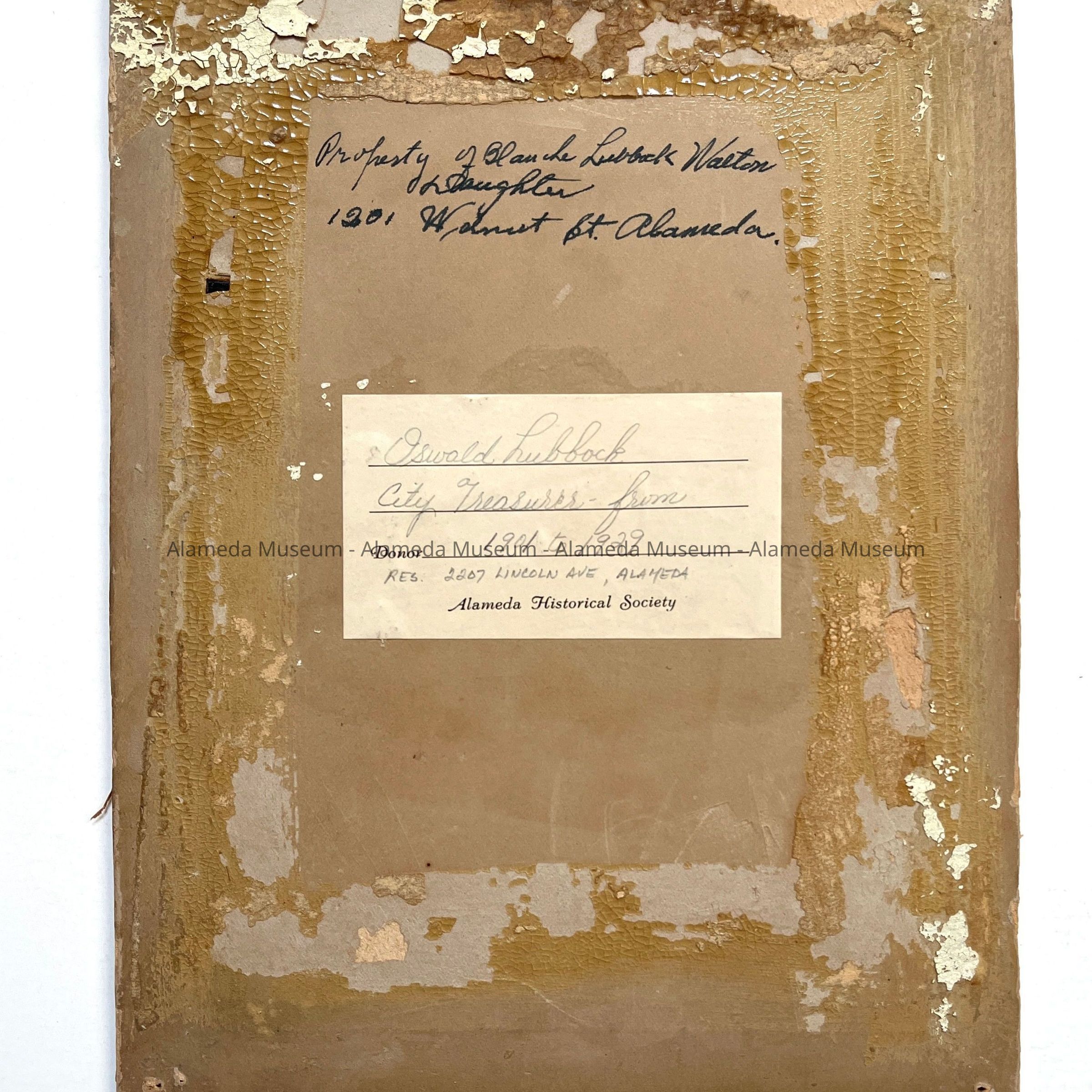 History of Object: Portrait of Oswald Lubbock, Alameda City Treasurer and Tax Collector, 1901-1929. He resided at 2207 Lincoln Avenue (per the 1912 Alameda City Directory).