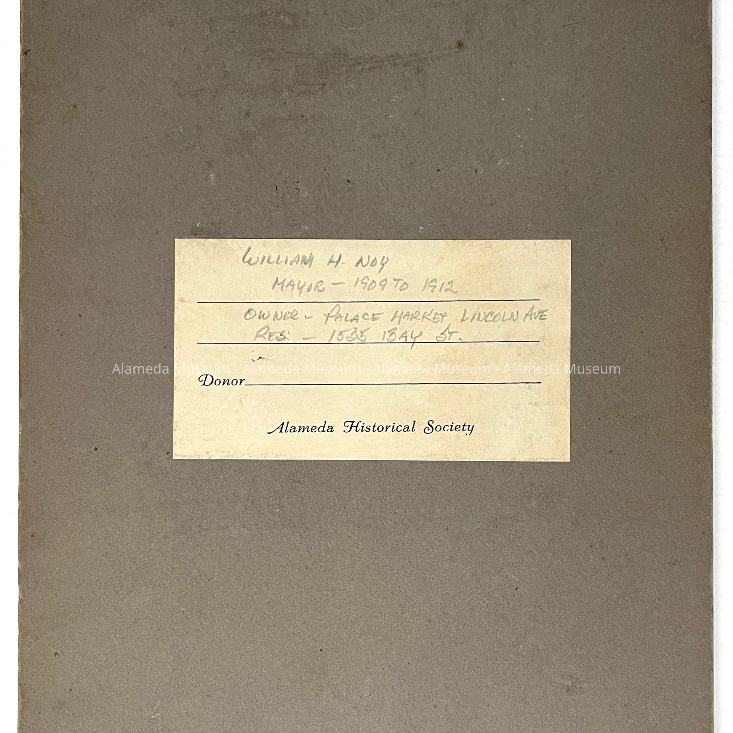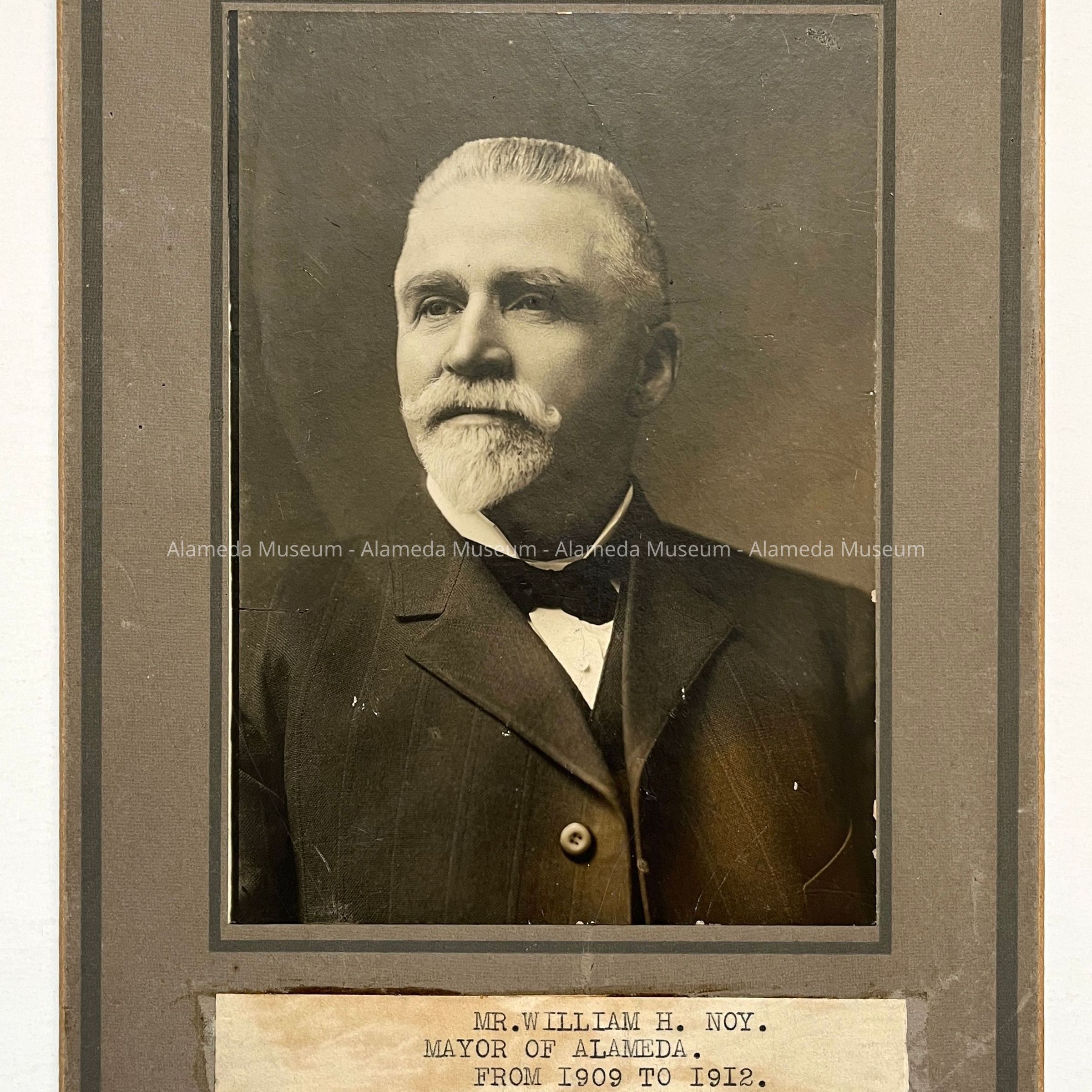 History of Object: Portrait of William H. Noy around the time he served as Mayor (1909–1912). He owned the Palace Market on Lincoln Avenue, and resided nearby at 1535 Bay Street.