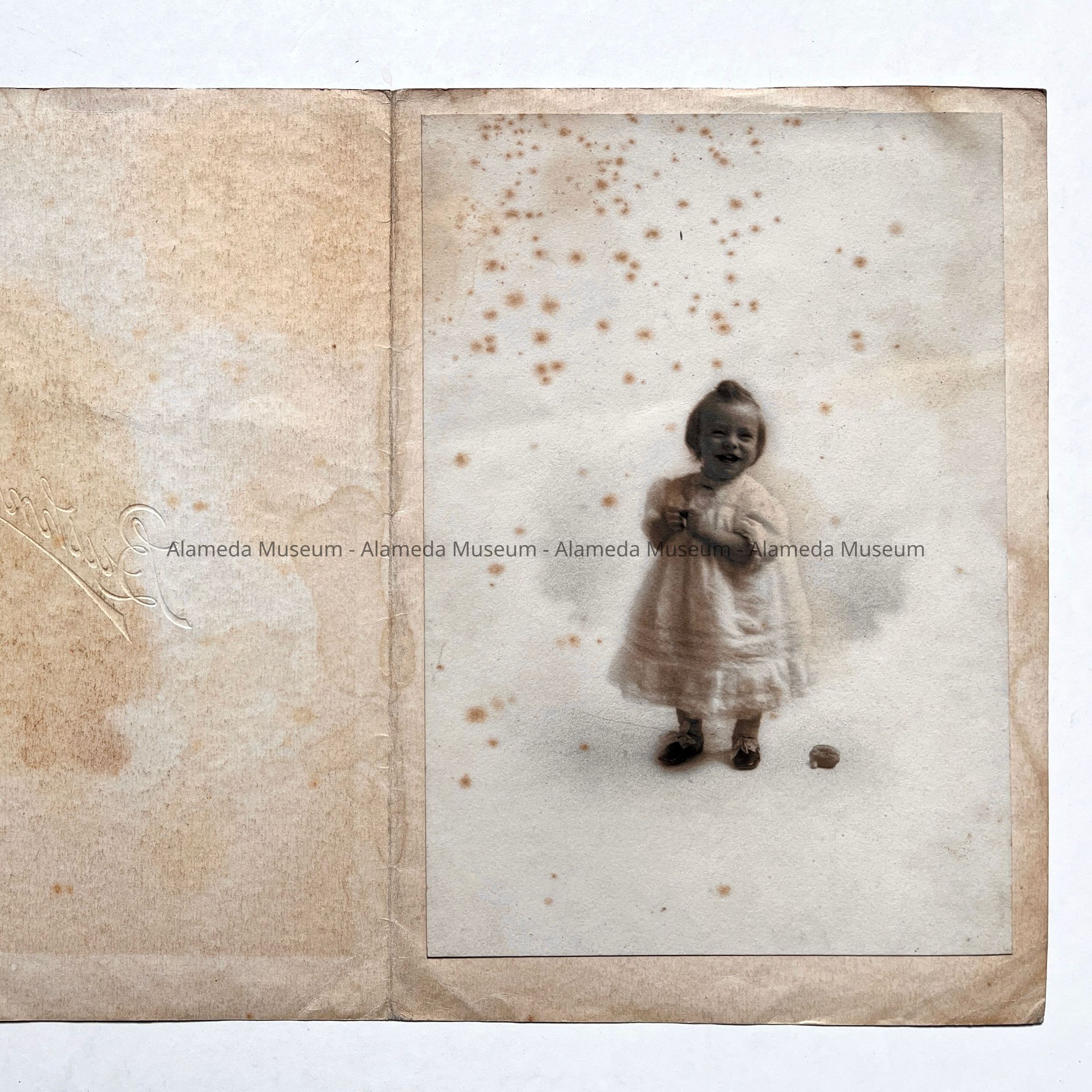 BLACK-AND-WHITE PHOTOGRAPH IN OFF-WHITE-COLORED JACKET. COVER OF JACKET IS SIGNED, "BUSHNELL," IN RAISED LETTERS.