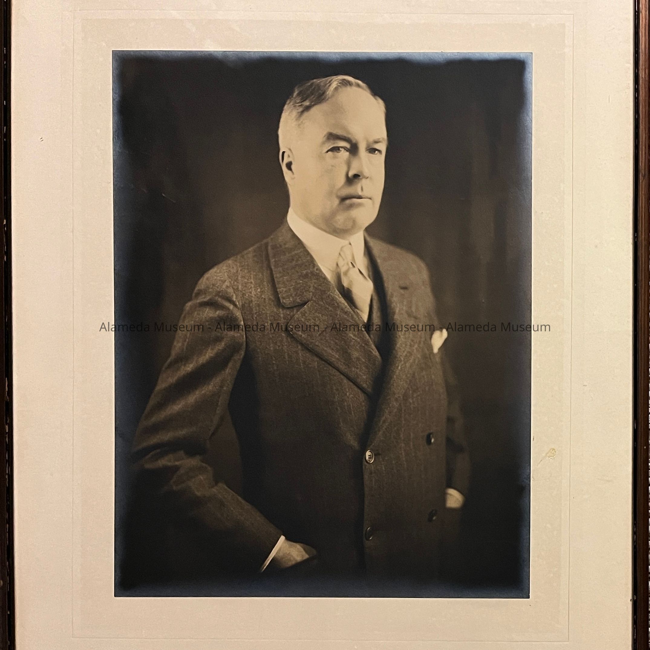 DESCRIPTION: Sepia tinted portrait photograph on custom mat signed "Blank & Stoller, Inc., New York". Frame is antique gold.