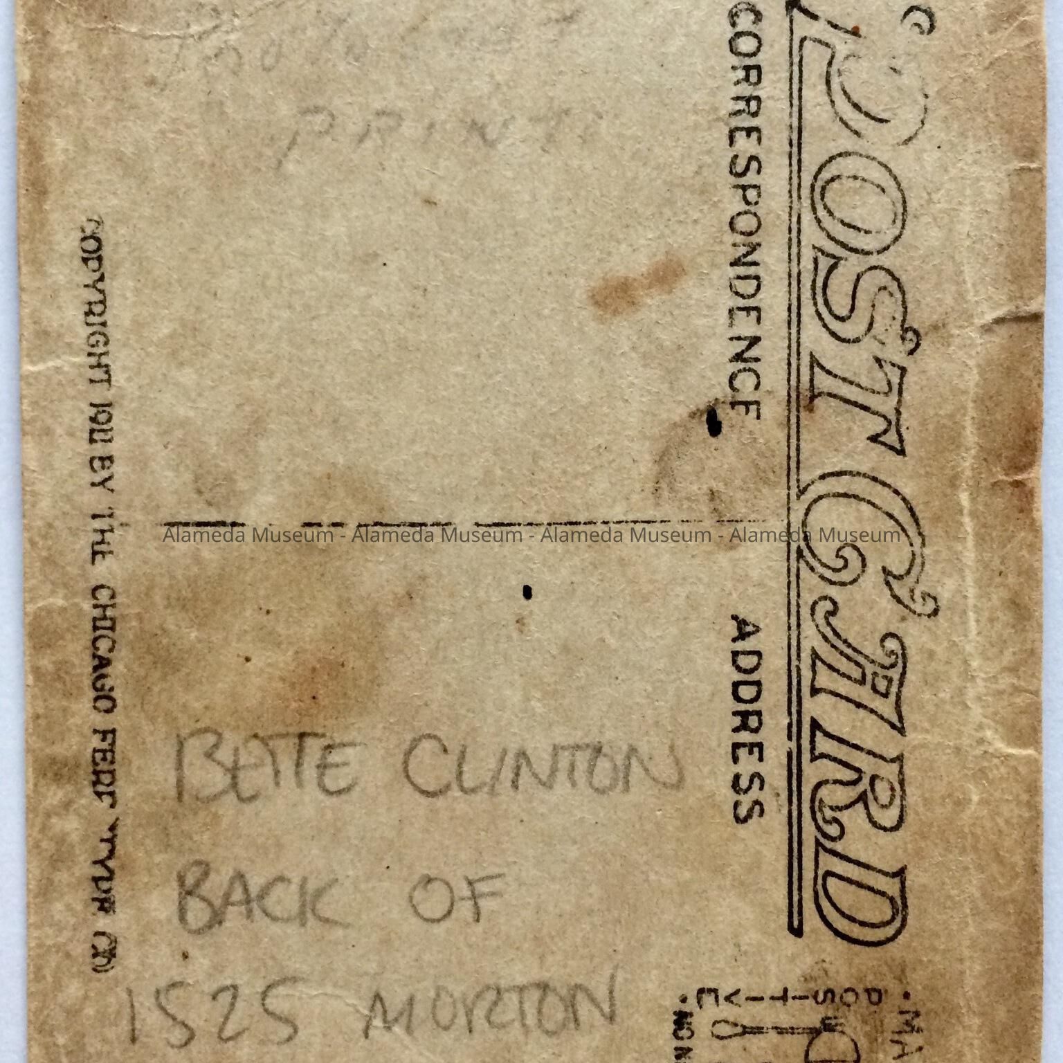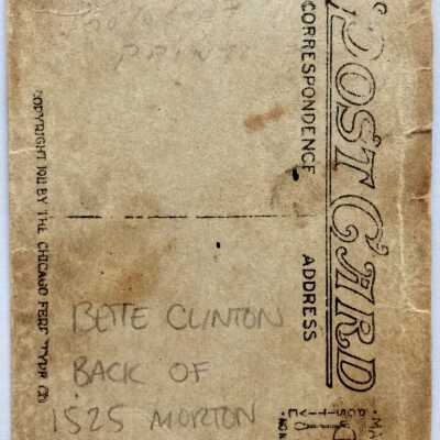 Photo postcard of Bette Clinton on the front porch of 1525 Morton Str., c. 1915-1916Entry/Object ID