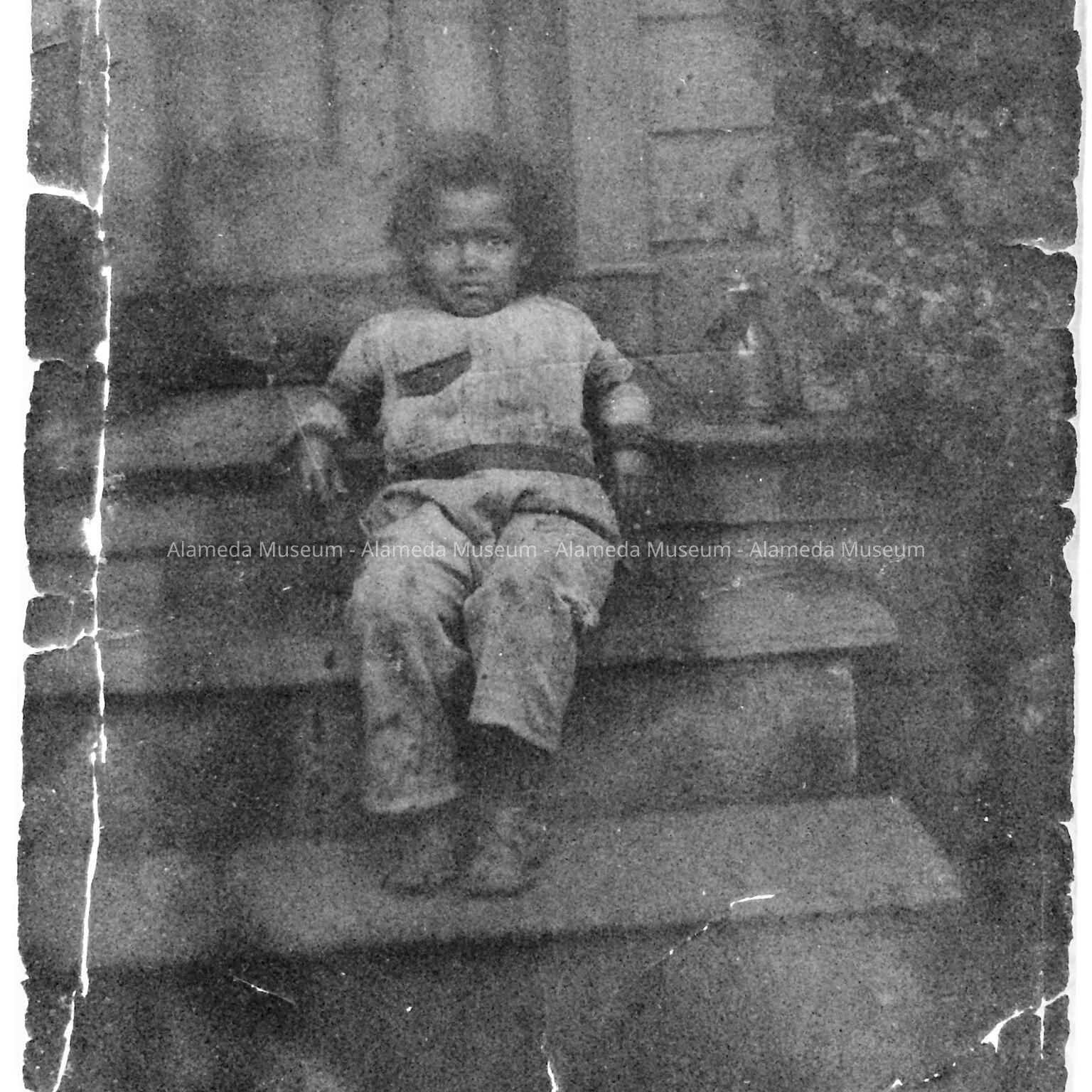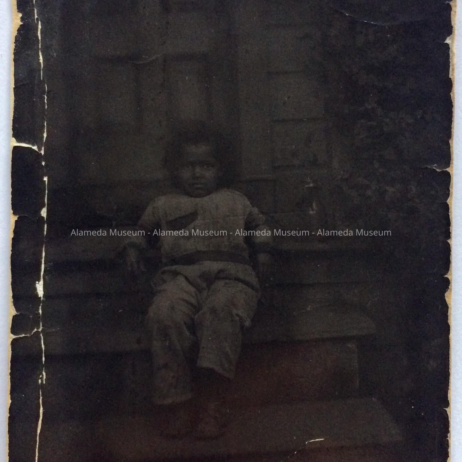 History of Object: Photograph of Bette Clinton on the front porch of 1525 Morton St. She was a member of an early African-American family of Alameda.