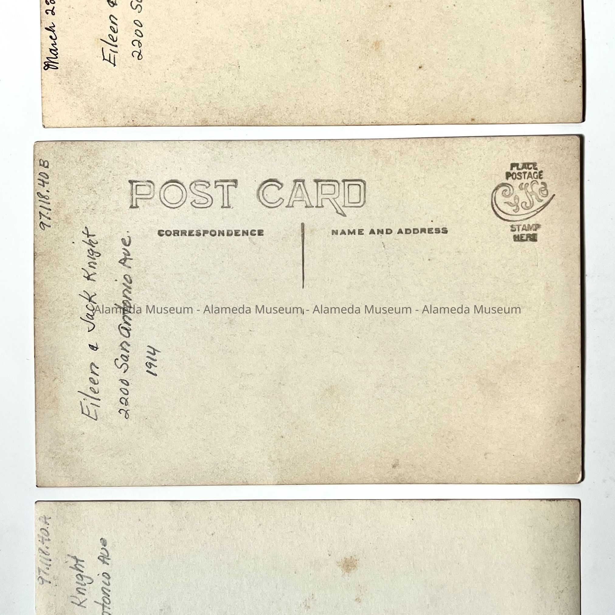 Photo postcards of Eileen and Jack Knight on the steps of 2200 San Antonio, 1914Entry/Object ID