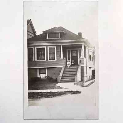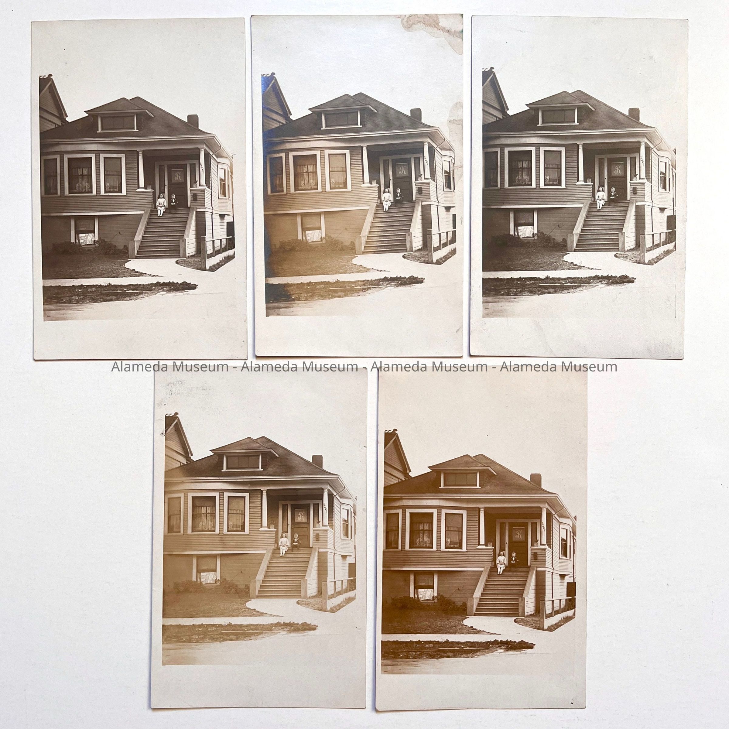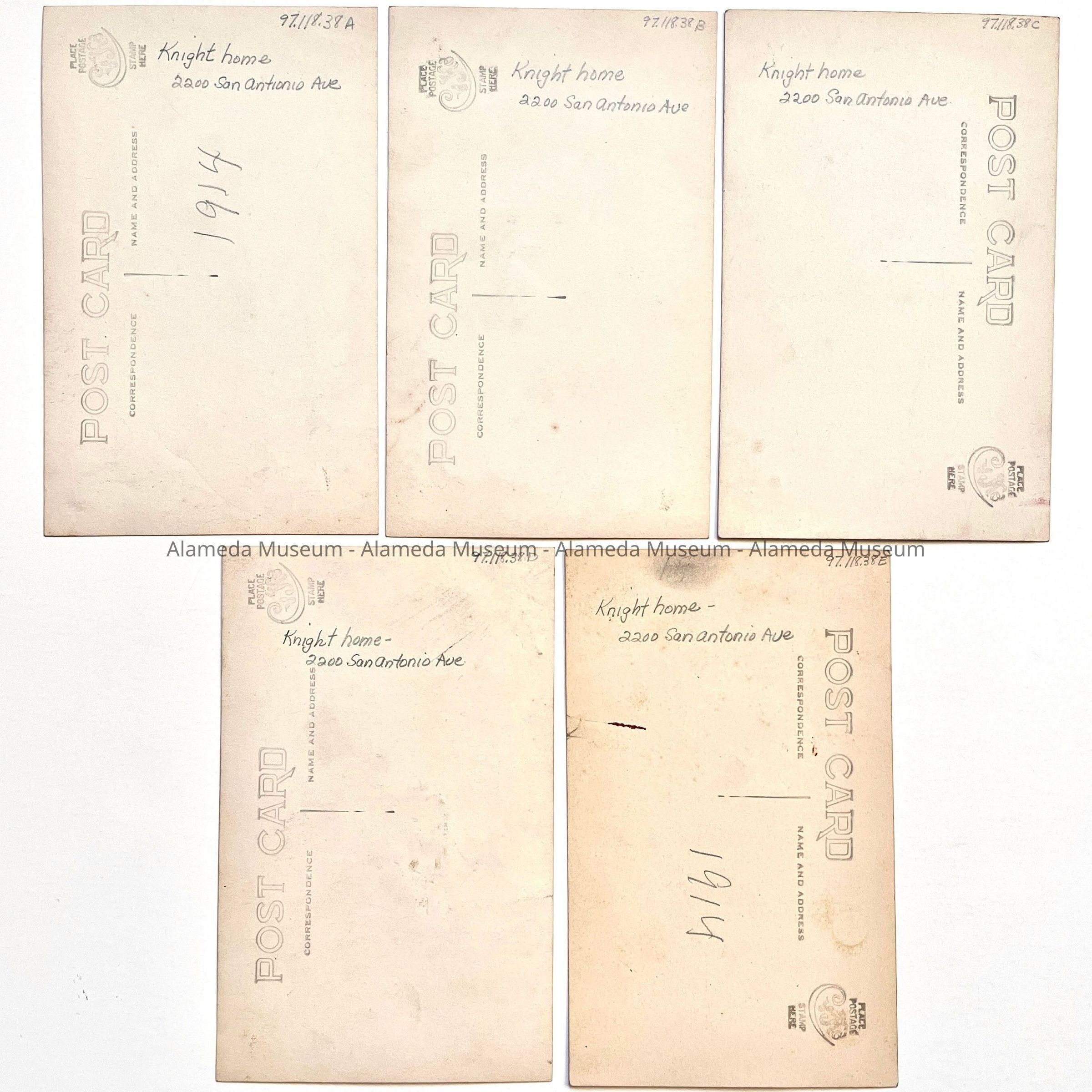 PHOTOGRAPHIC POSTCARDS, DEPICTING THE EXTERIOR OF 2200 SAN ANTONIO AVENUE, ALAMEDA, CALIFORNIA, WHEN THE RESIDENCE WAS OCCUPIED BY THE KNIGHT FAMILY. THE HOUSE WAS ERECTED IN 1907 BY CONRAD ROTH, AND IT IS STILL STANDING IN 1997.