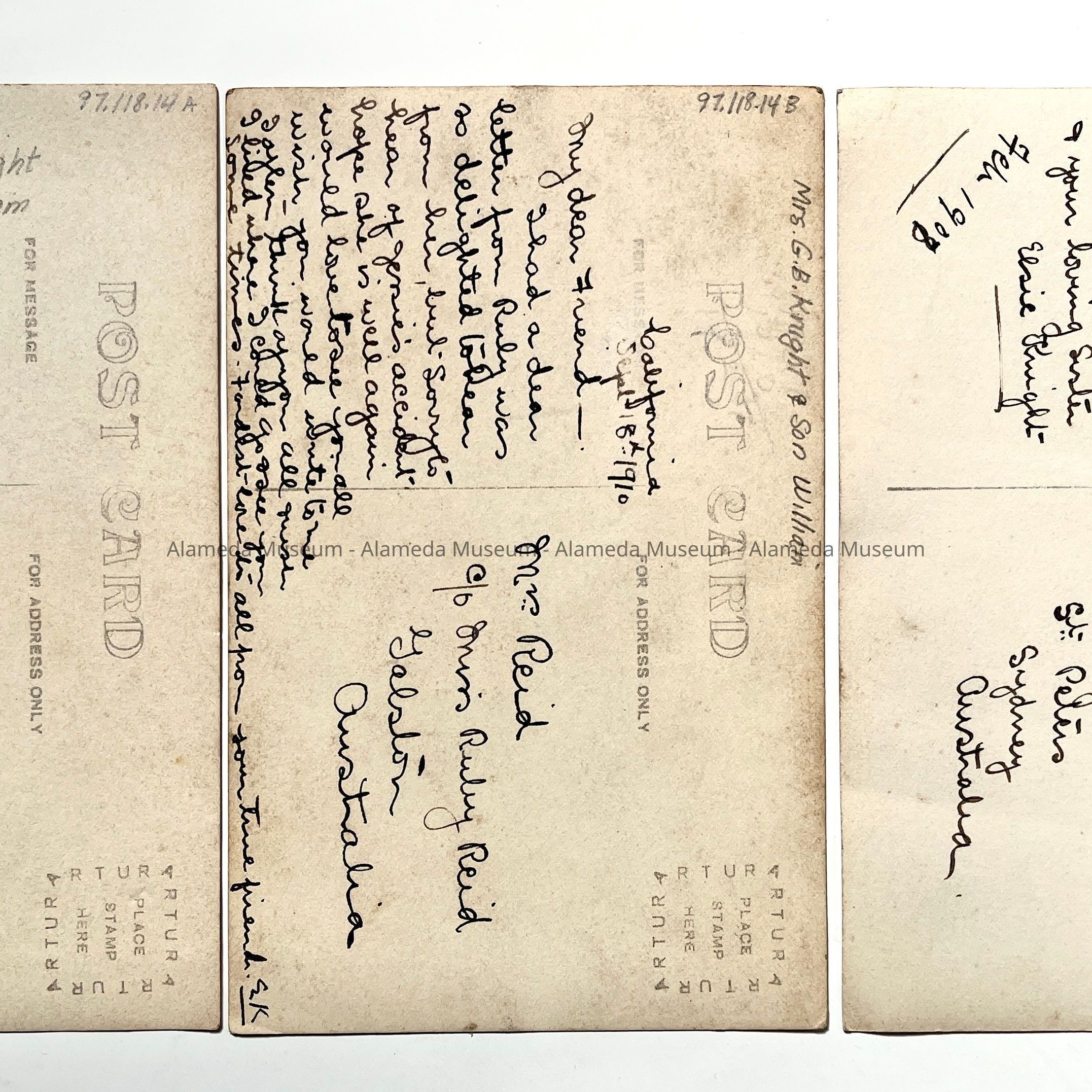 Photo postcards of Mrs. G. B. Knight and son William, 1908Entry/Object ID