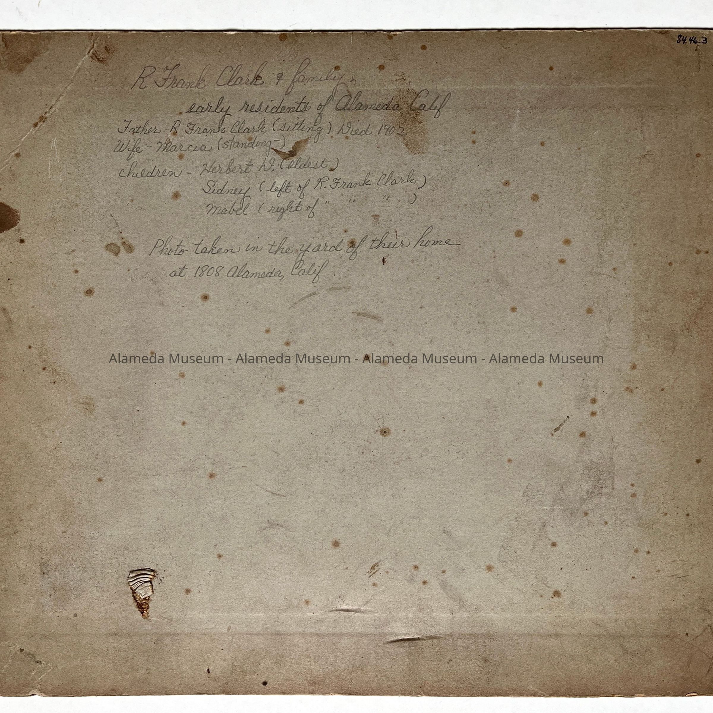 Photo R. Frank Clark family, in yard 1808 Alameda Ave, c. 1890sEntry/Object ID