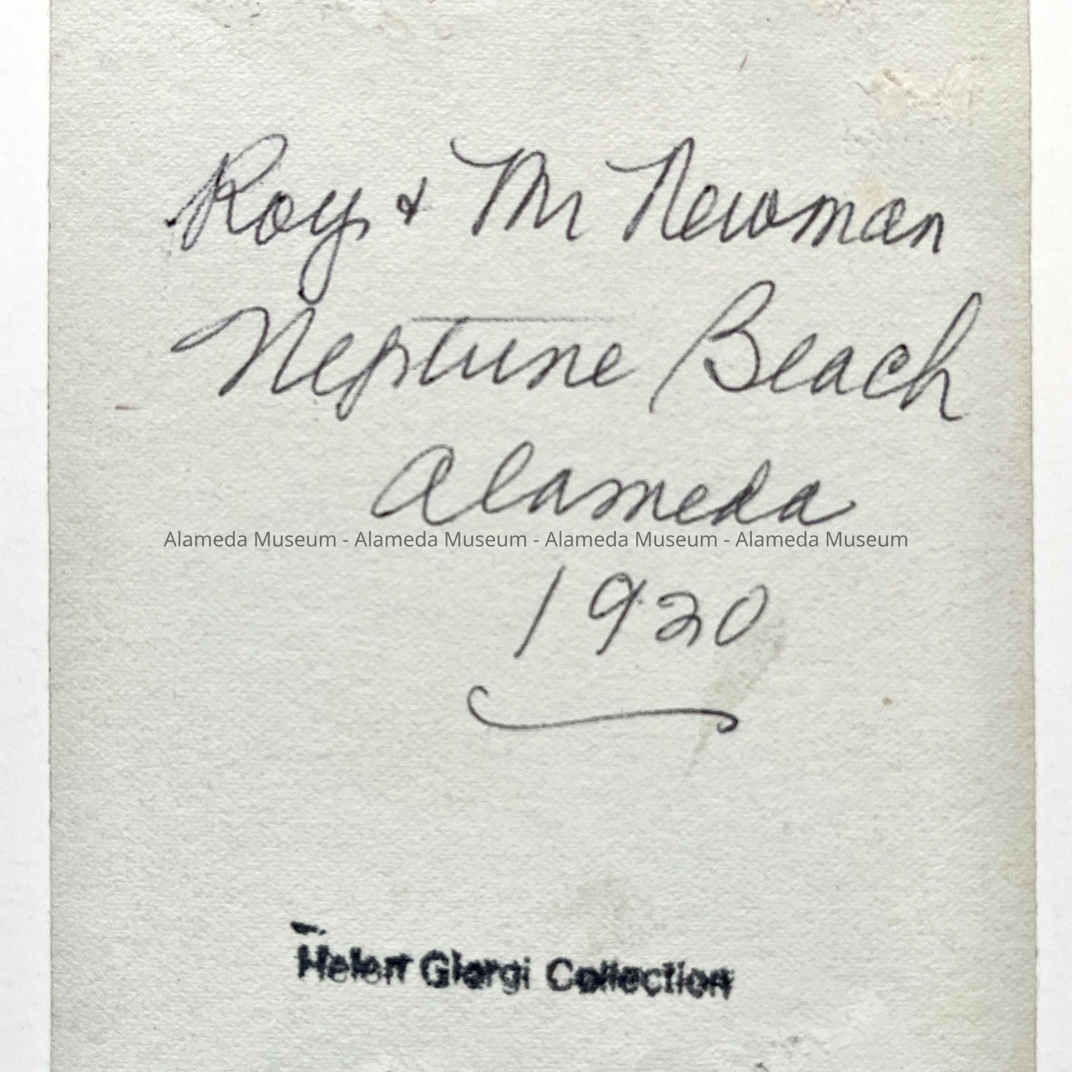 History of Object: Photo of Roy Newman and Mr. Newman, Neptune Beach, Alameda, California, 1920.