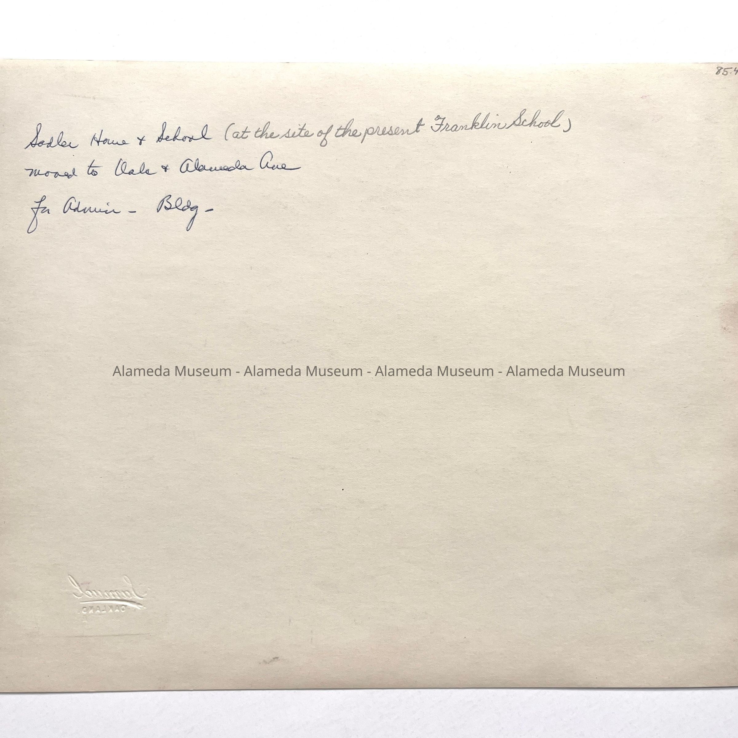 Photo of the Sadler School (now known as Franklin), Paru Street and San Antonio Avenue, circa 1930. The photo was taken by Ford E. Samuel (then a professional photographer), who would become Postmaster of the City of Alameda.