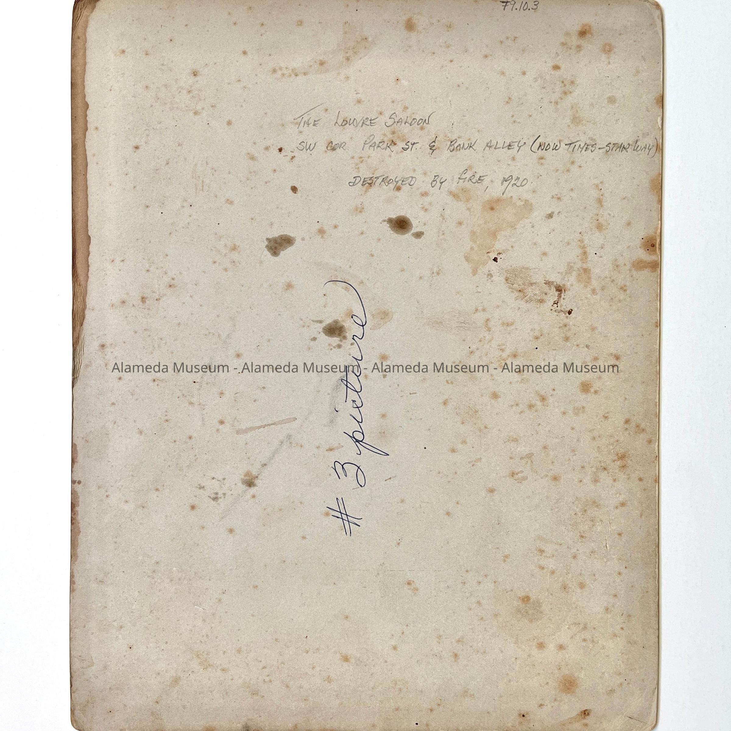 Photo Saloon the Louvre, Park Str. and Times Way, photographer, Geo. Ball, Ca. 1890Entry/Object ID