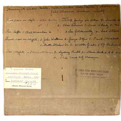 Black/white glossy photo mounted on charcoal gray paperboard. Three sides of mounting broken off. Photographer unknown.