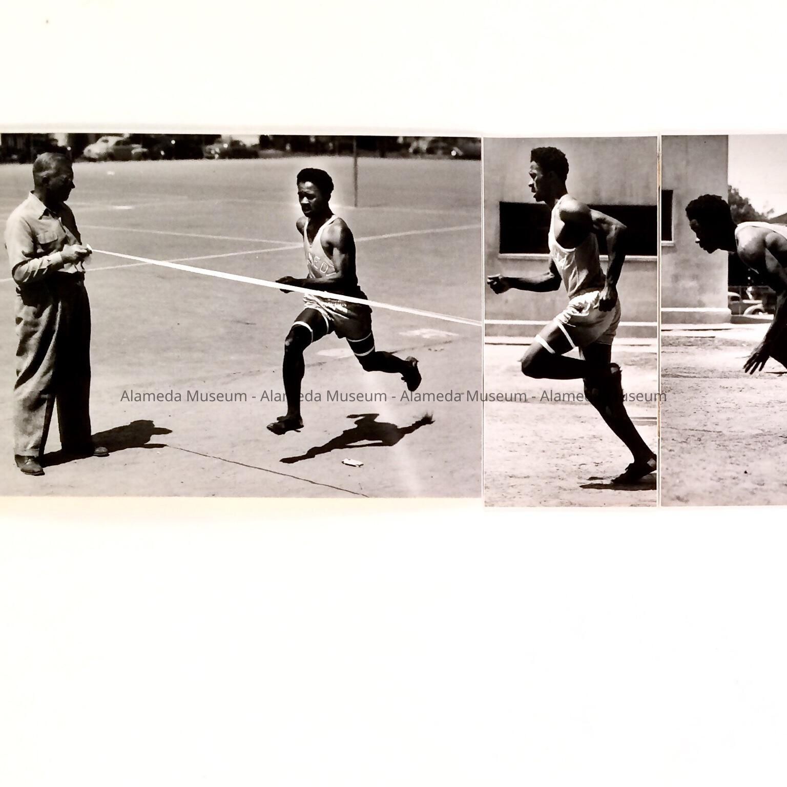 Photo series of AHS runner Herbert Turner, one with Coach Jolley, 1953Entry/Object ID