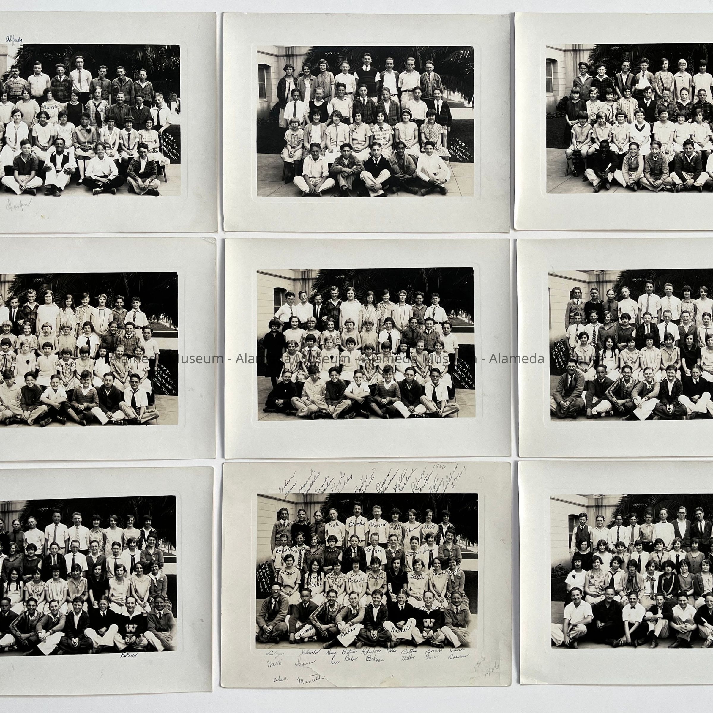 History of Object: Series of class photos taken within the same time frame in the same location Students and classes are unidentified. Images #d and #e are identical, as are #f, #g, #h.
