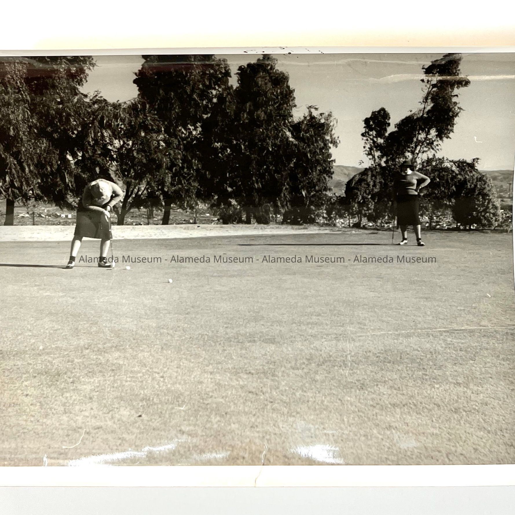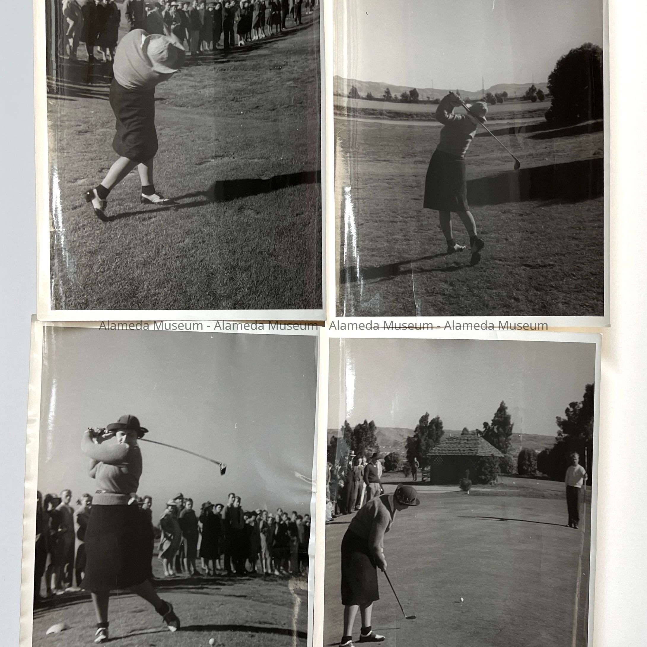 A PHOTOGRAPHIC SERIES OF PATTY BERG, GOLF PRO, PHOTOGRAPHED AT THE ALAMEDA MUNICIPAL GOLF COURSE.