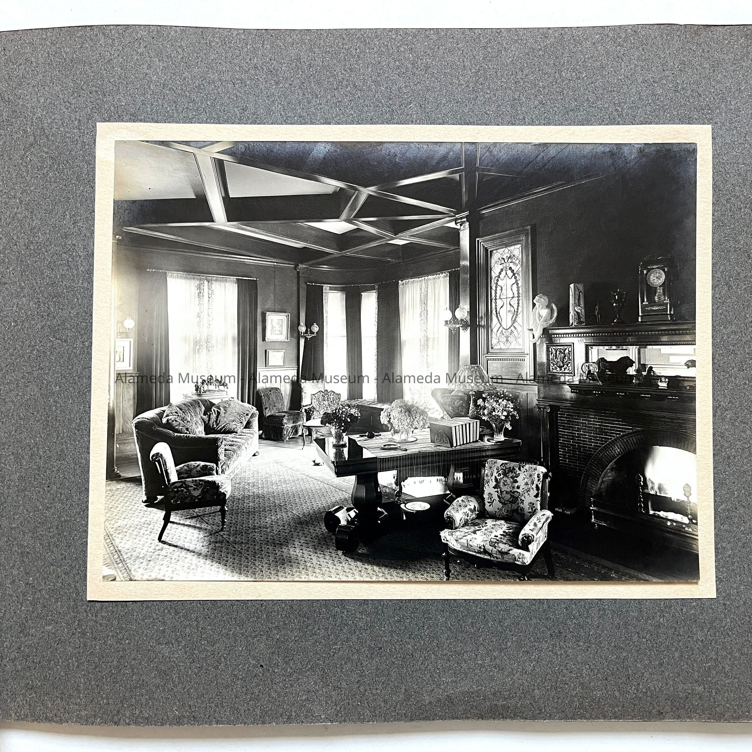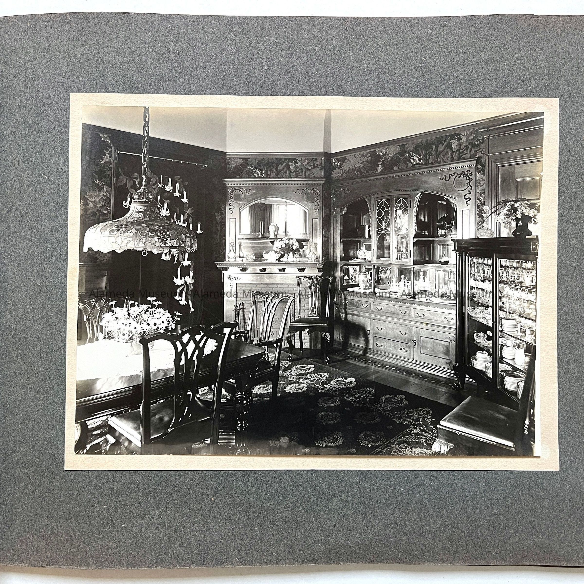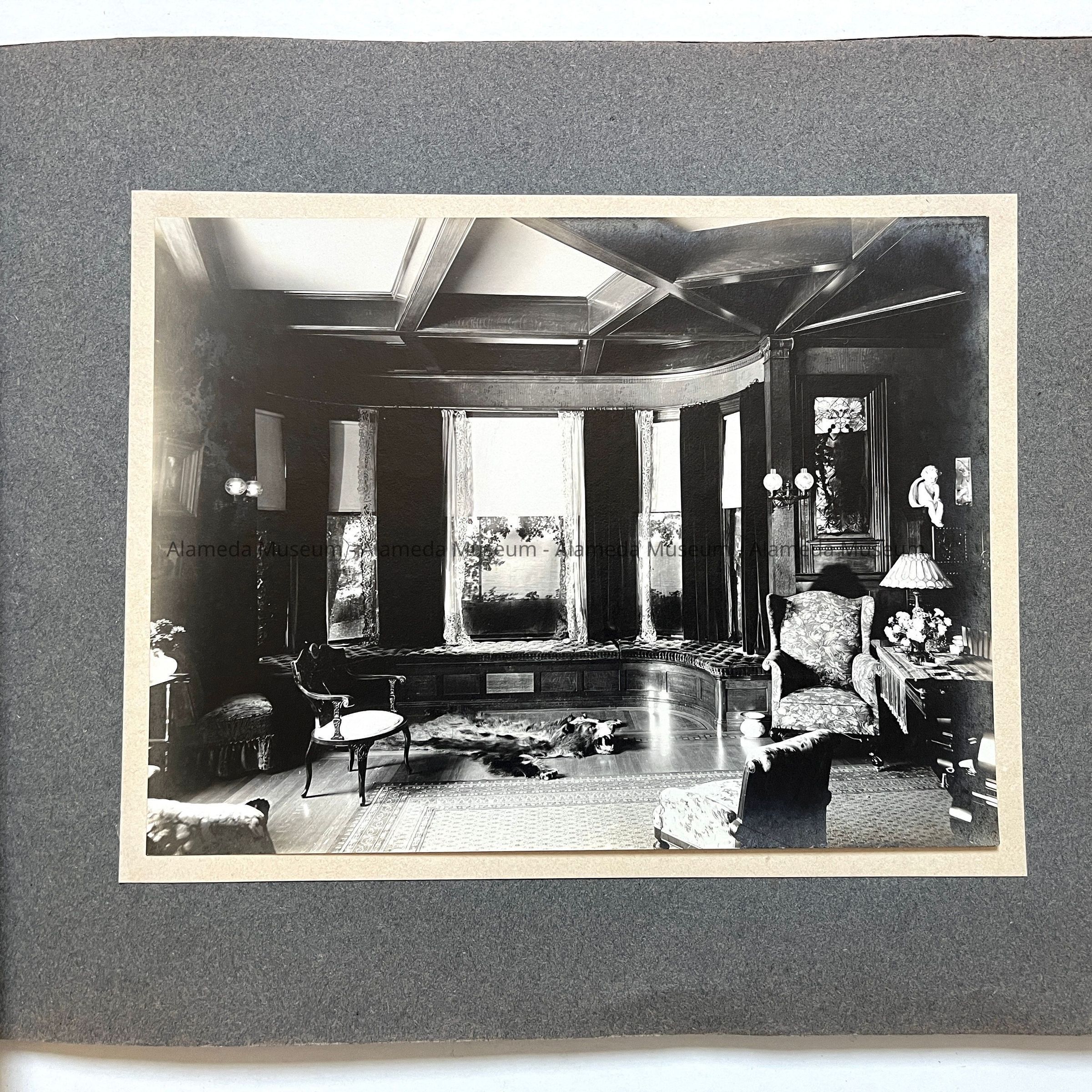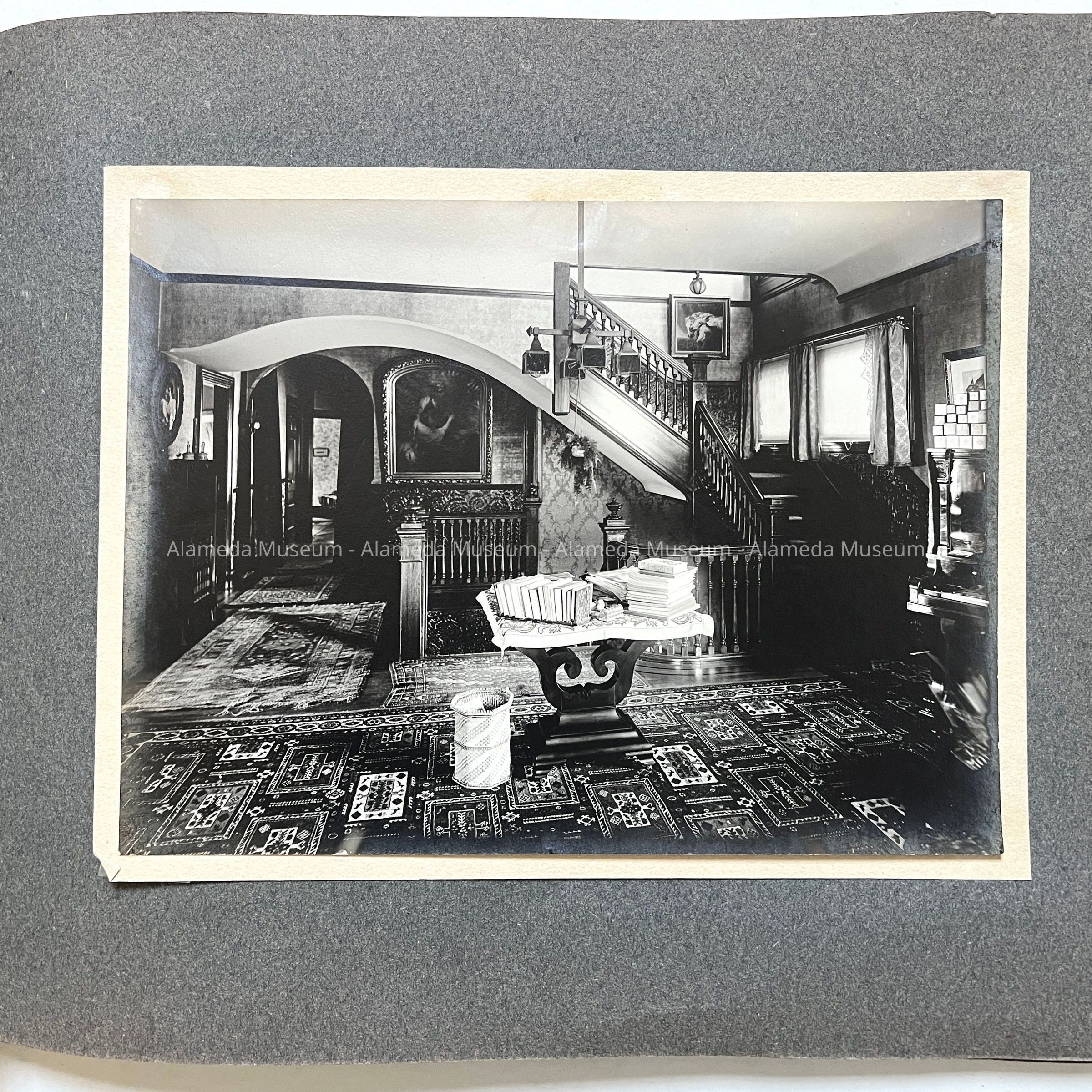 The house was built in 1893 by lumberman H.K. Fields, then sold in 1908 to S.A. Moss (father of the donor), again sold in 1916 to State Senator Joseph R. Knowland, who eventually sold it to Lloyd Swaine (who ultimately removed the third story). The home is now stuccoed into a Mediterranean design.