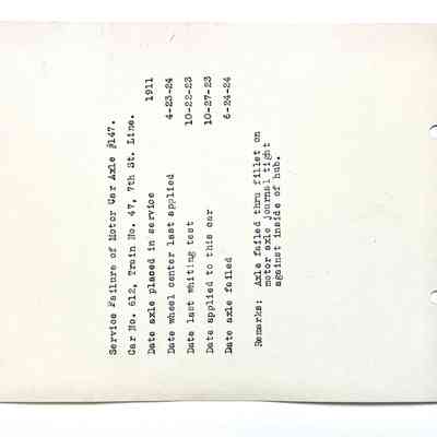 Photo service failure of motor car axle #147, 1924Entry/Object ID