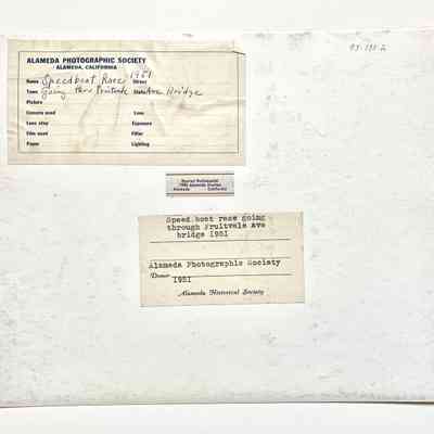 History of Object: Speedboat race going under the Fruitvale (Versailles Ave.) Bridge, 1951.