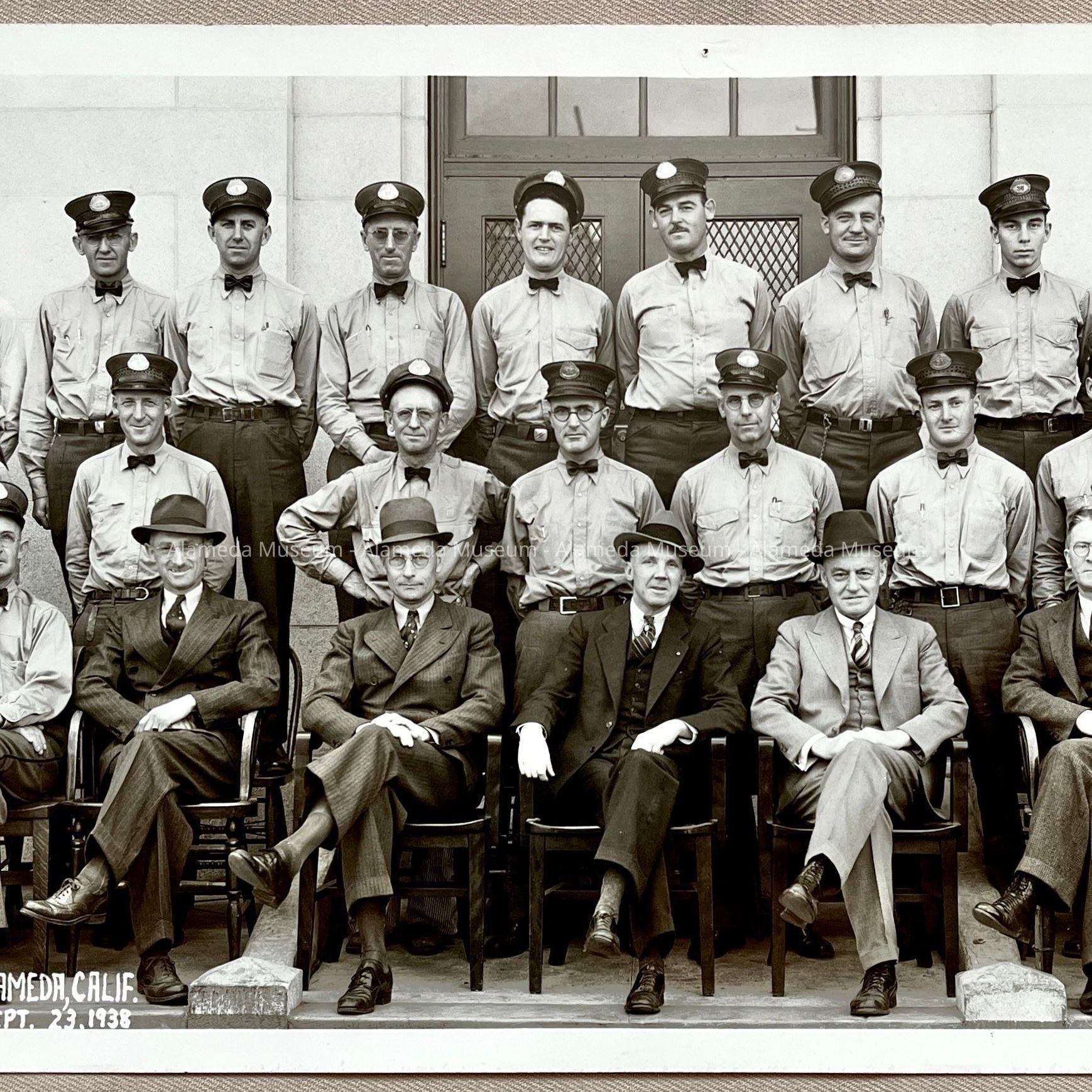 PHOTOGRAPH OF THE STAFF AND EMPLOYEES OF THE ALAMEDA BRANCH , UNITED STATES POST OFFICE. IN THE FIRST ROW CENTER, PICTURED, IS FORD E SAMUEL, POSTMASTER. PHOTOGRAPH IS PART OF THE ORIGINAL ALAMEDA HISTORICAL SOCIETY COLLECTION. IT WAS NOT CATALOGED UNTIL 1997.