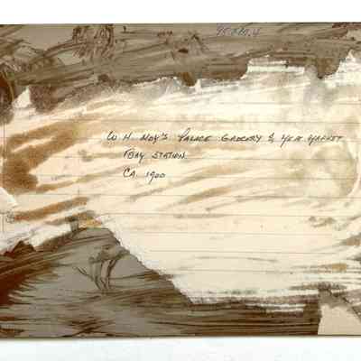 Description: Sepia-toned albumen print mounted on black paperboard. Photographer unknown. Descriptive label affixed to upper margin of image. Some spotting and fading on image.