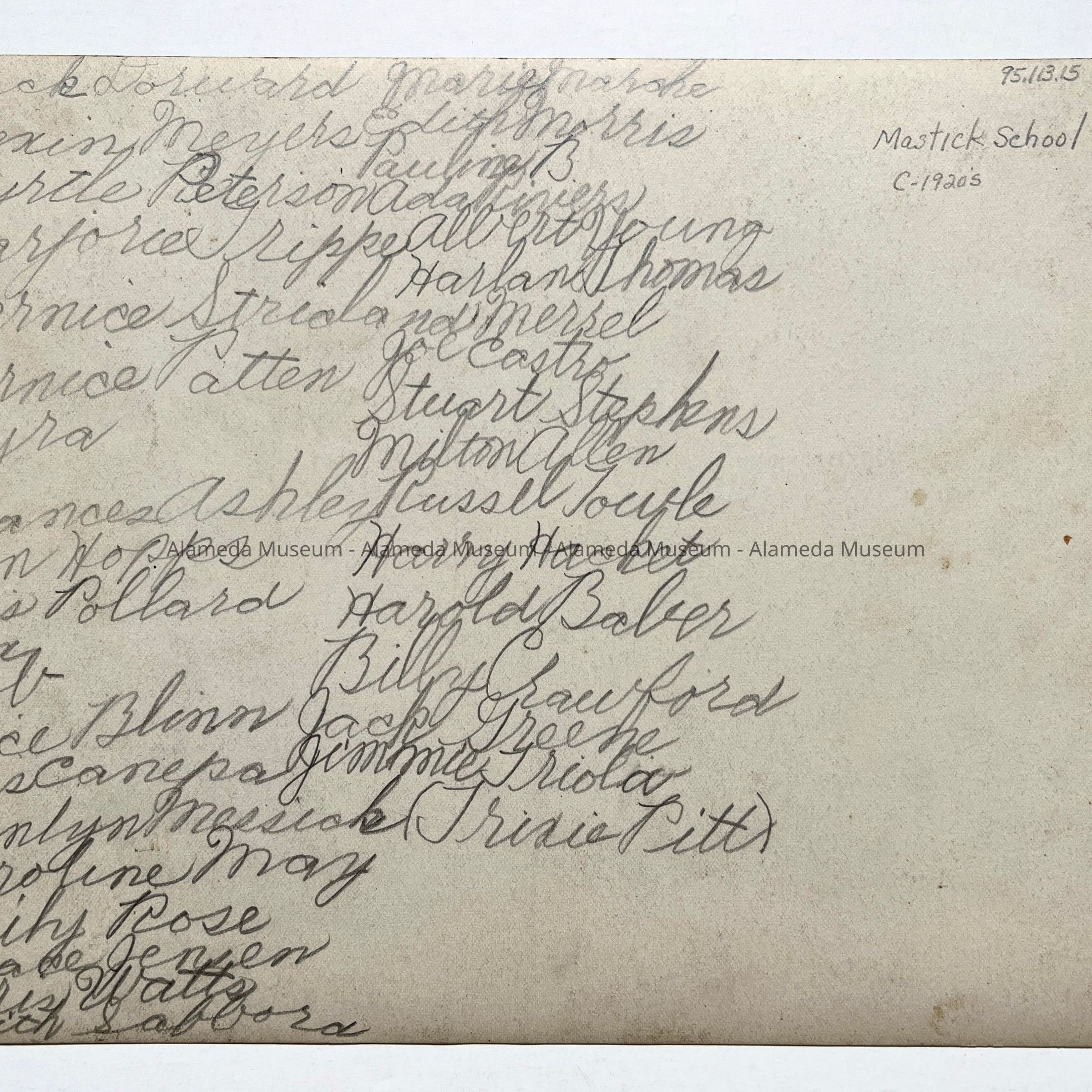 Photo students at Mastick School, c. 1920Entry/Object ID