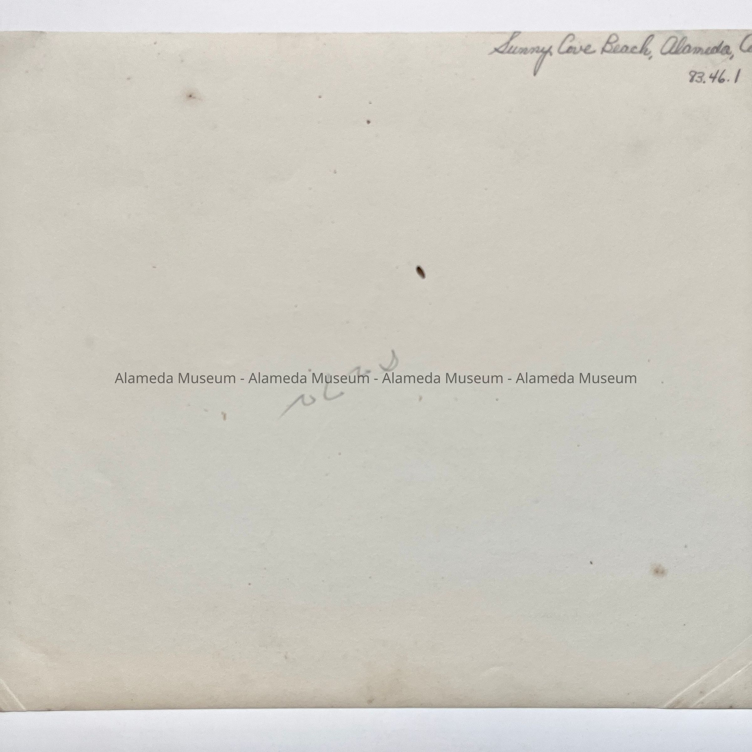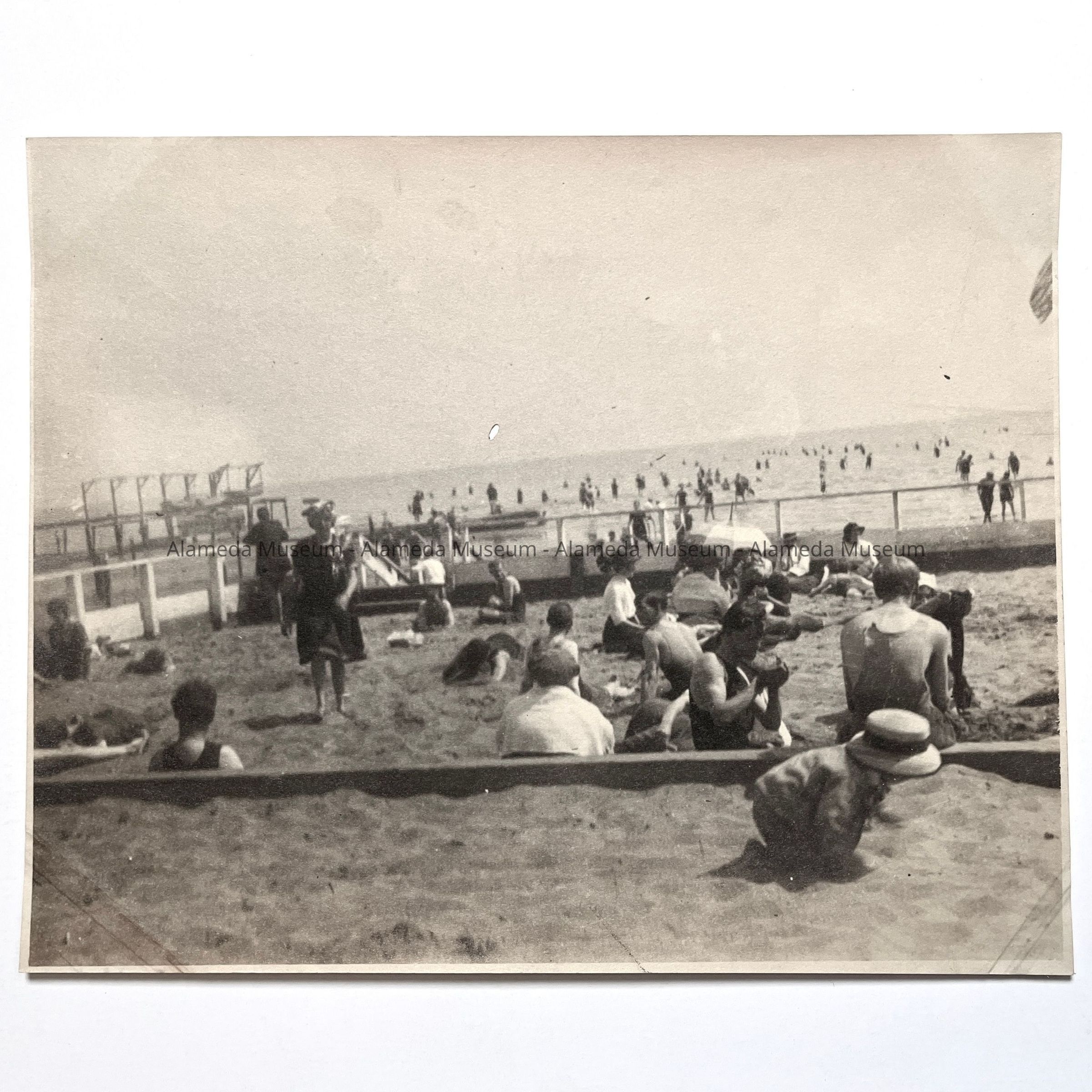 History of Object: Photograph of Sunny Cove Beach, circa 1915, George H. & Bertha Masters owners & proprietors. The beach was founded in Alameda in 1881.