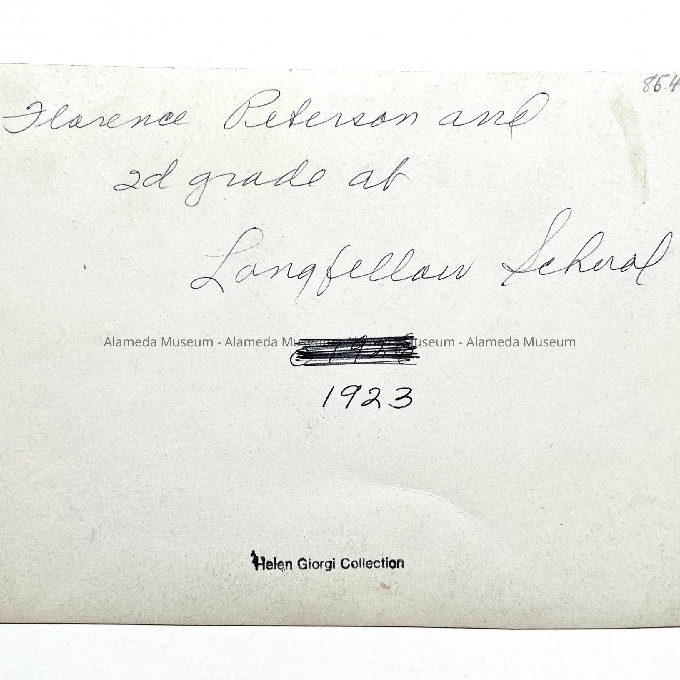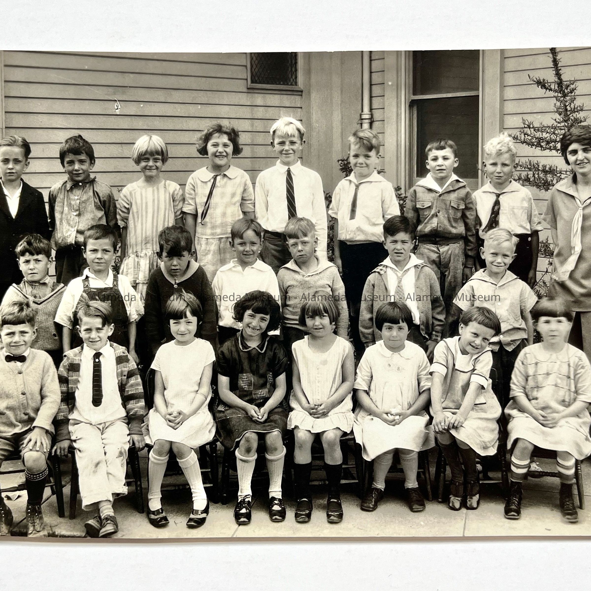 History of Object: Photo of the teacher Florence Peterson and her 2nd grade class, Longfellow School, Alameda, Ca.