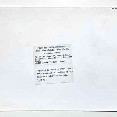 Photo "The Red Brick Building," Bethlehem Shipbuilding Works, Alameda, Calif. Built 1916-17. Now demolished. Photographed shortly before its demolition.